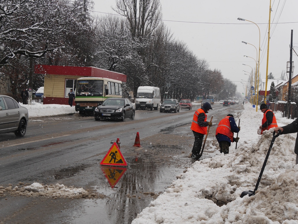 Ужгород продовжують розчищати від снігу. Комунальні служби працюють у посиленому режимі
