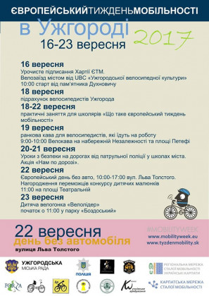 Європейський тиждень мобільності в Ужгороді завершать на День міста, 23 вересня.