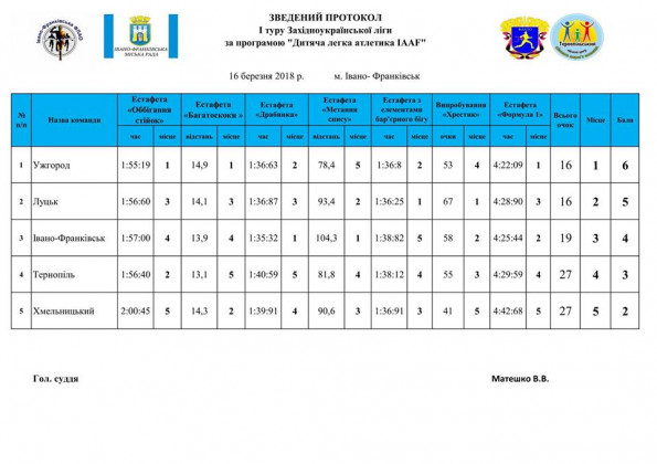 Ужгородська команда, яку представляли учні п’ятих класів спеціалізованої школи І-ІІІ ступенів № 3 з поглибленим вивченням англійської мови, взяла участь у І етапі Західноукраїнської ліги за програмою «Дитяча легка атлетика ІААФ» в Івано-Франківську. У спортивному залі комунального підприємства «Муніципальний фізкультурно-оздоровчий центр» змагалися 6 команд, учні п’ятих класів, з Ужгорода, Хмельницького, Луцька, Тернополя та дві команди з Івано-Франківська.