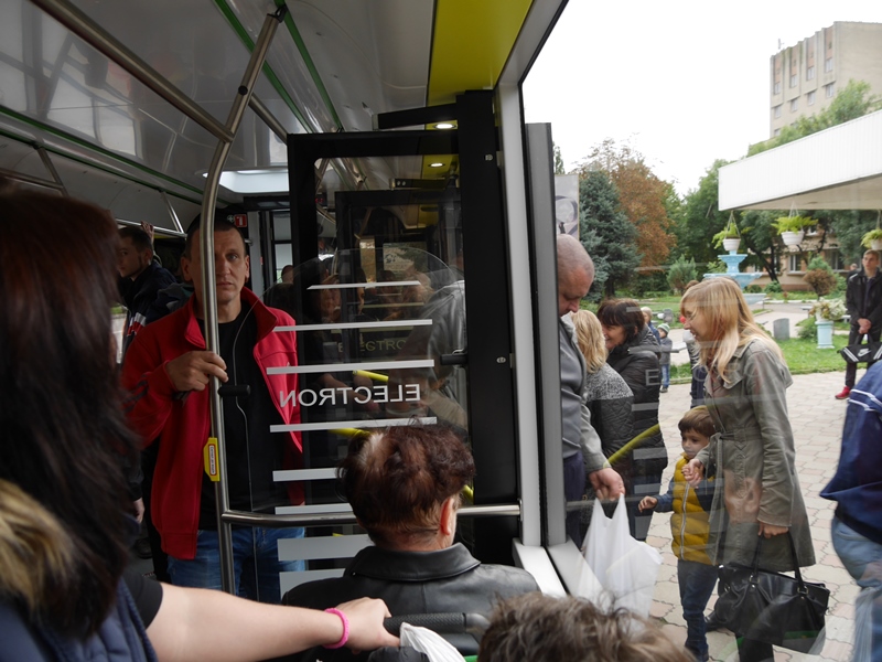 Сьогодні сучасний автобус “Електрон” їздив на маршруті №21 (вул. Чорновола – Речовий ринок). Щойно поїхав у рейс, об 11-ій годині, як дуже швидко наповнився пасажирами, які, дивуючись ноу-хау на ужгородських дорогах та безкоштовному проїзду, діставали мобільні телефони, щоб зробити на пам’ять фото та поділитися враженнями із друзями.