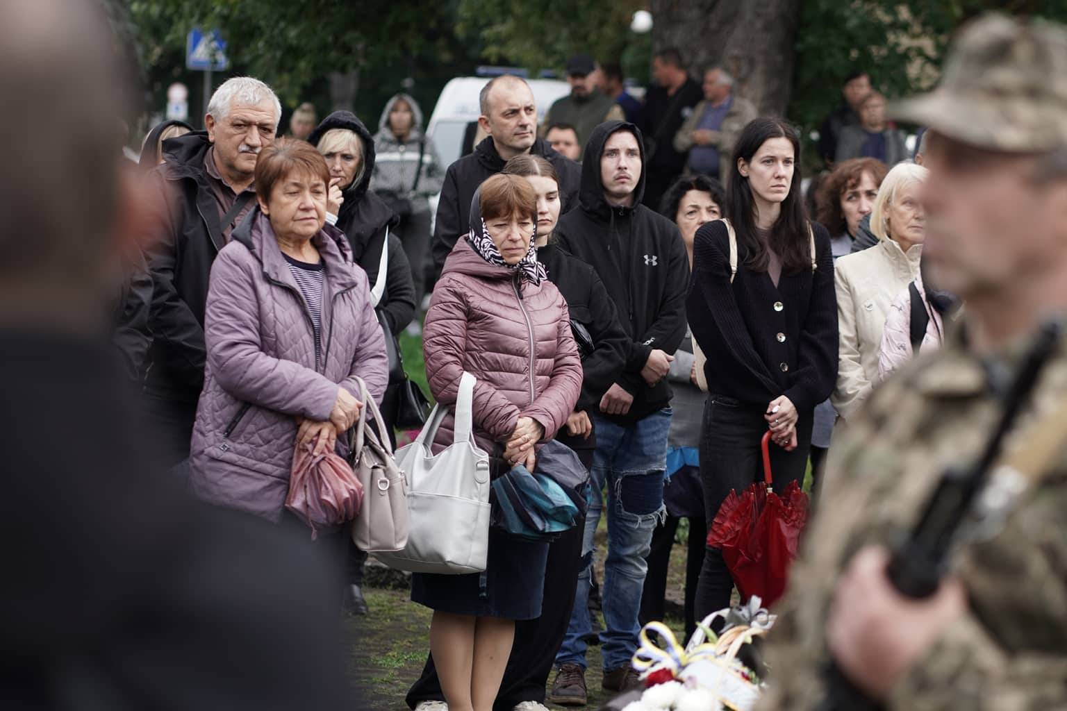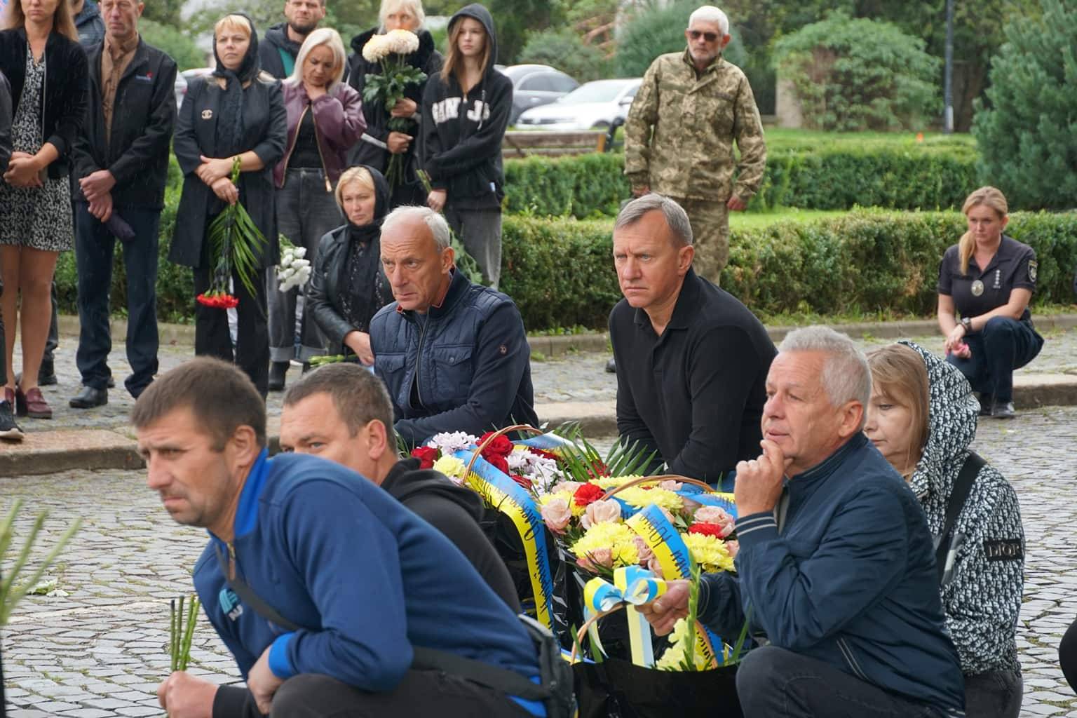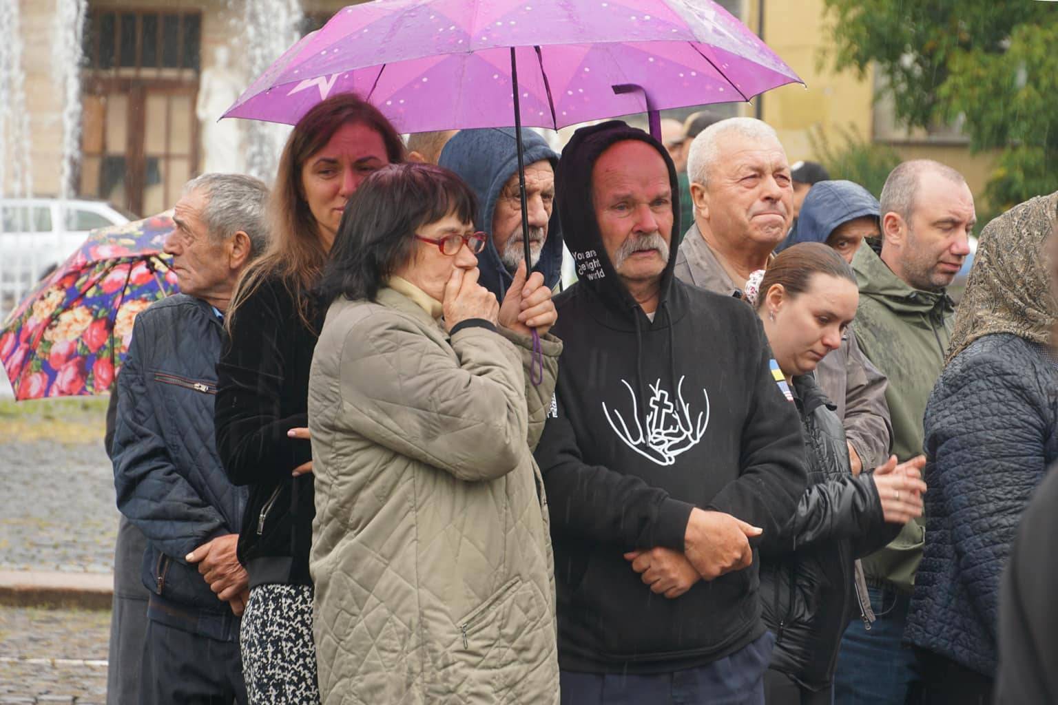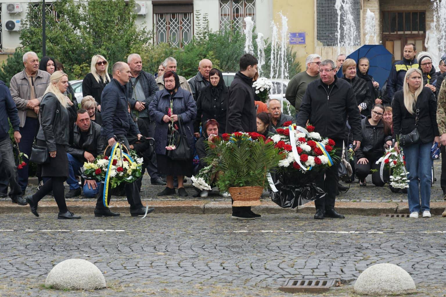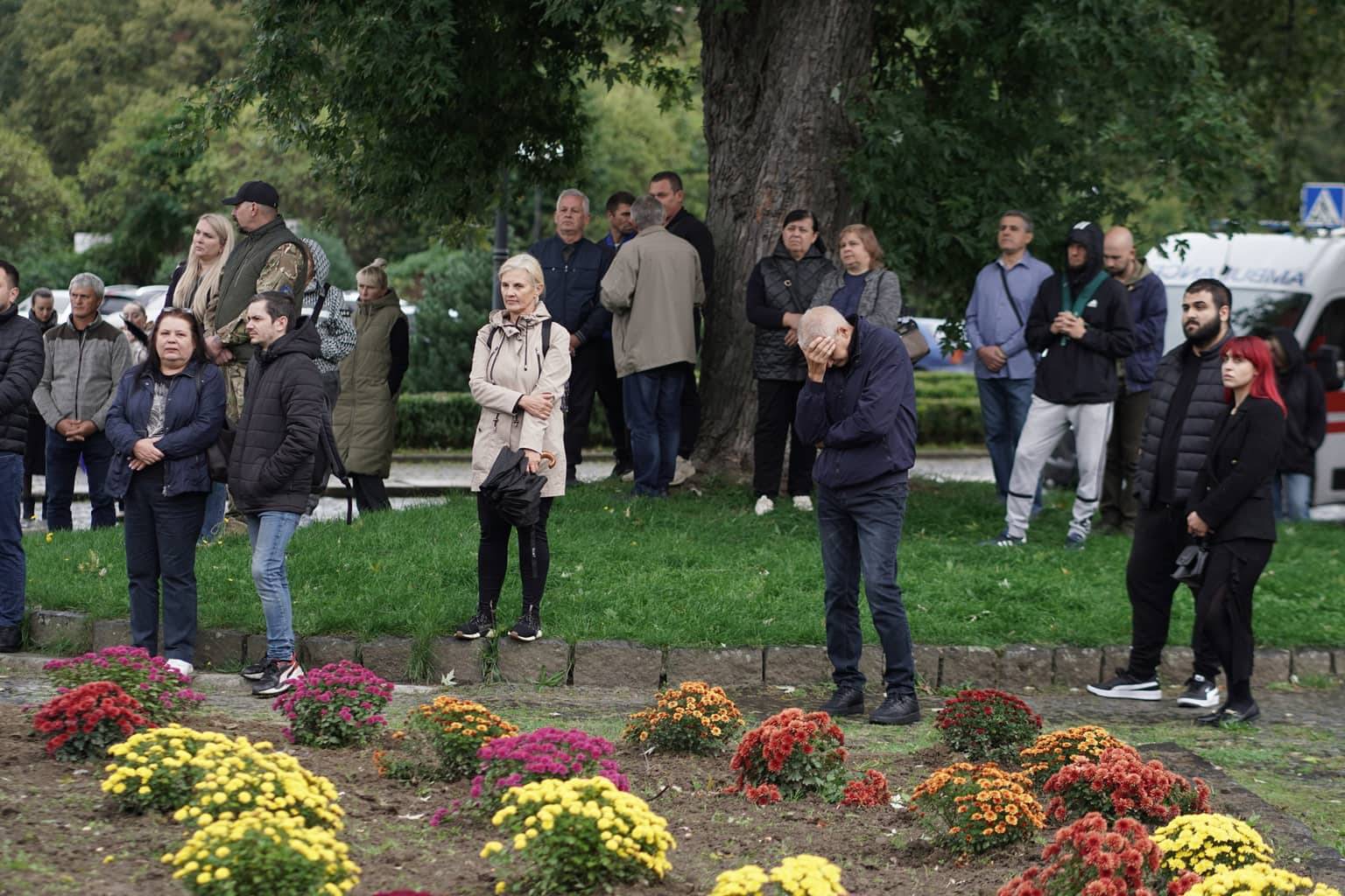Попрощатися із захисниками на площі Народній прийшли рідні, друзі, колеги, військові, побратими, міський голова Богдан Андріїв та жителі Ужгорода.