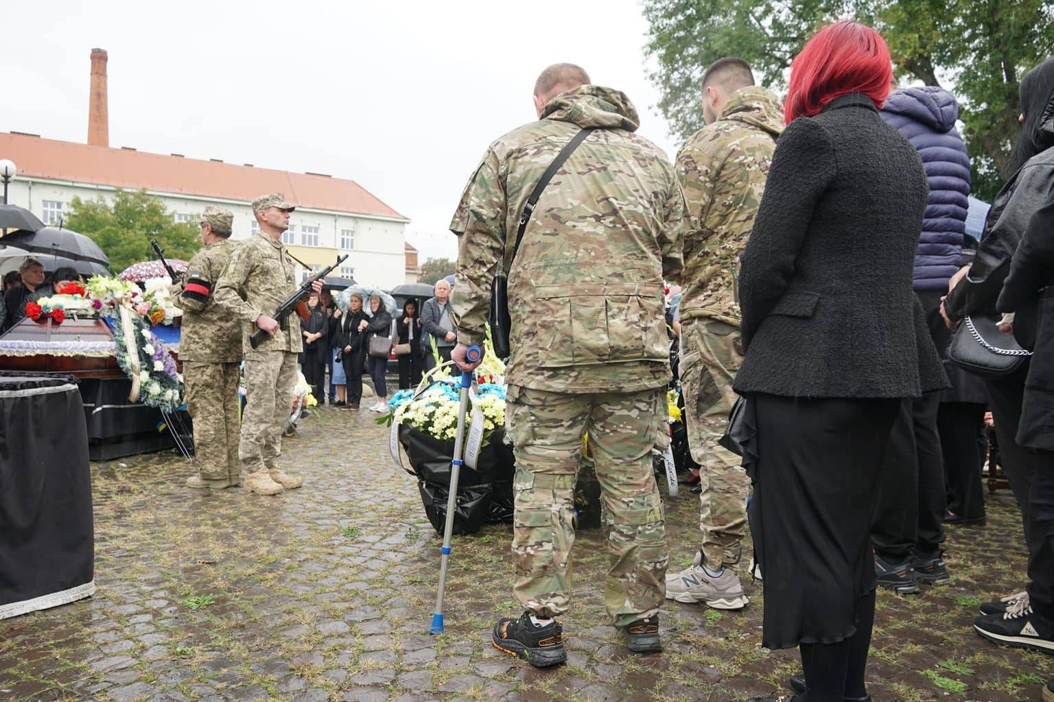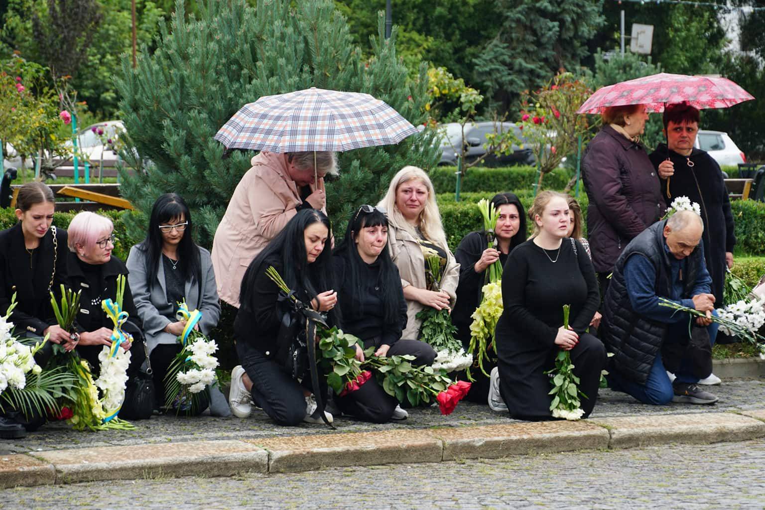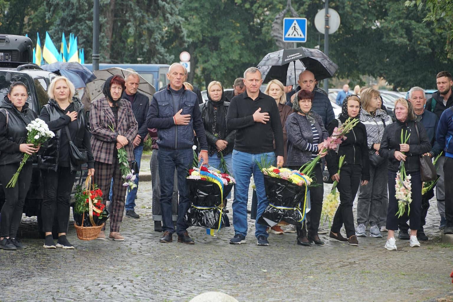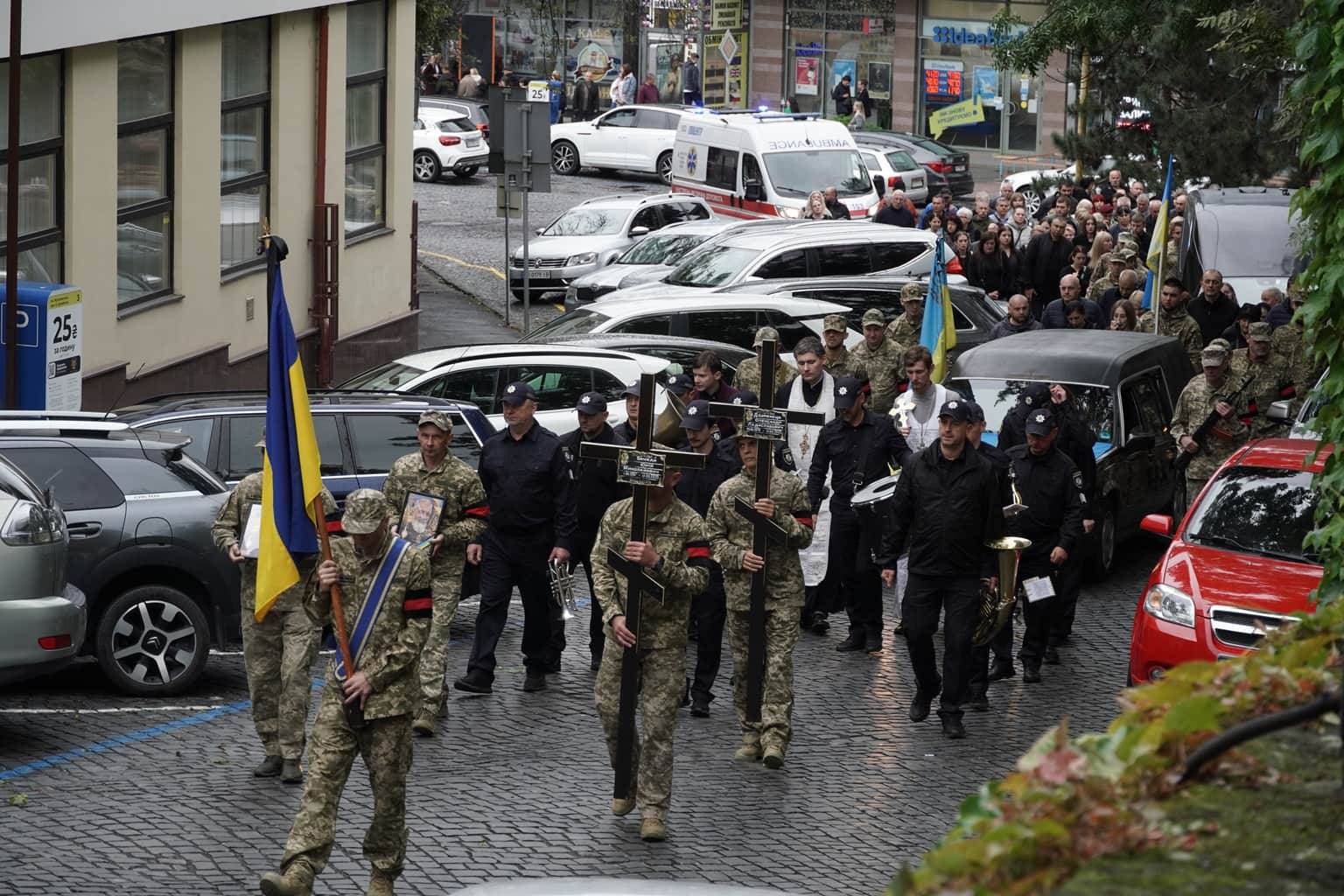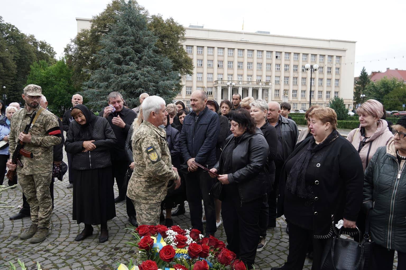 Попрощатися із захисниками на площі Народній прийшли рідні, друзі, колеги, військові, побратими, міський голова Богдан Андріїв та жителі Ужгорода.