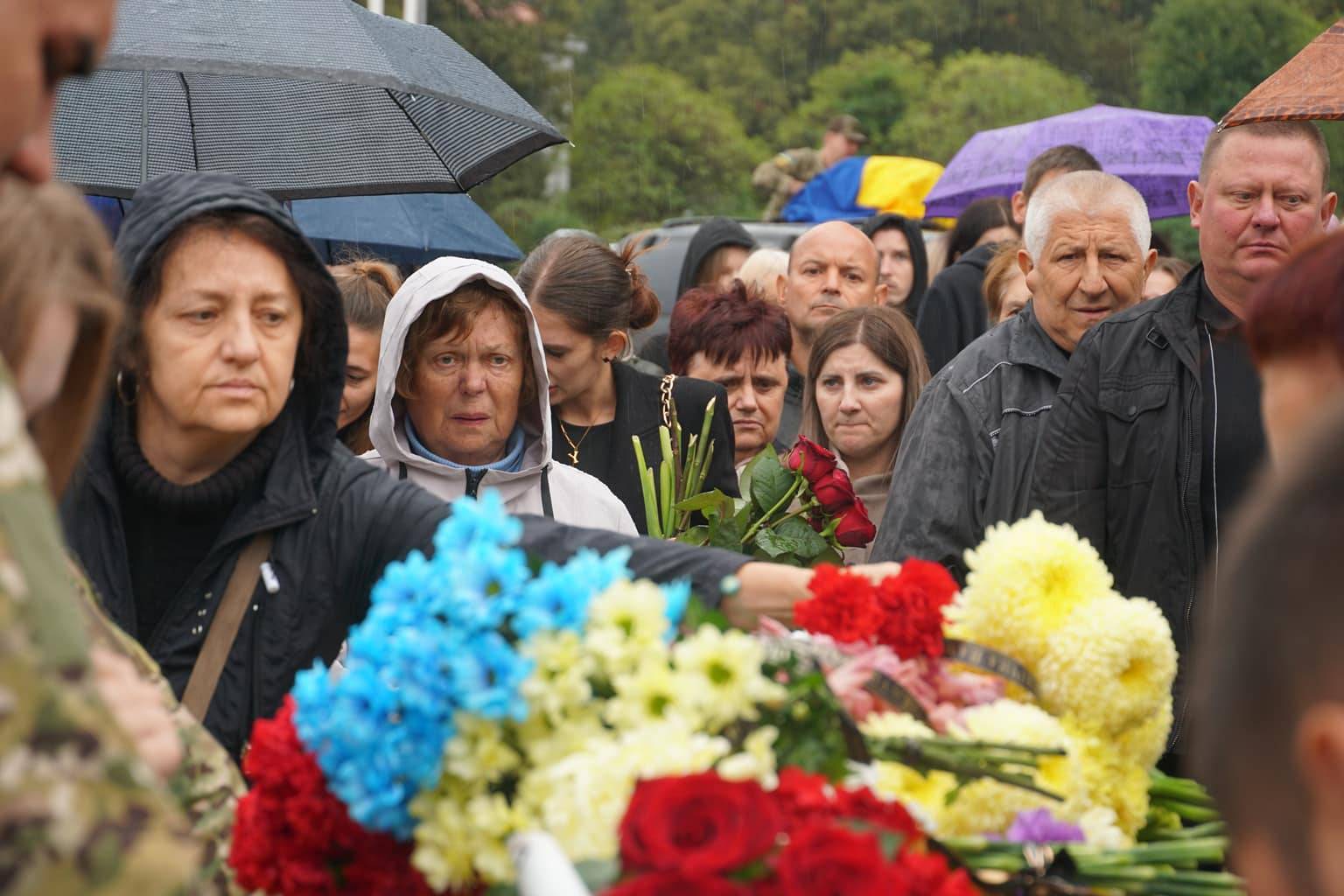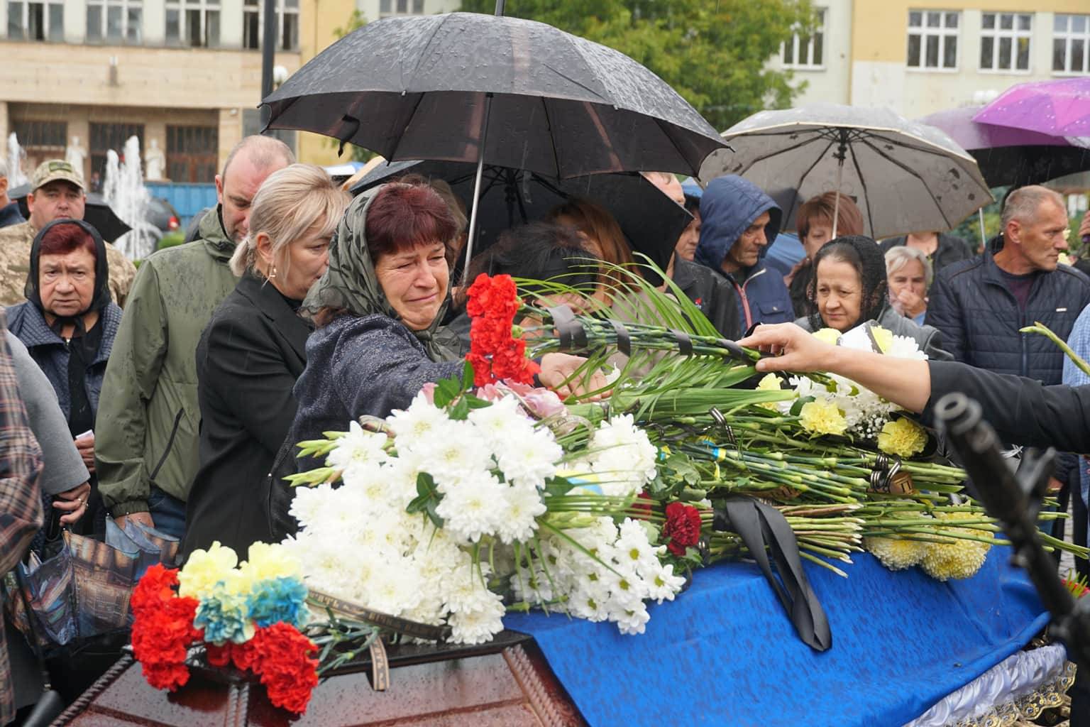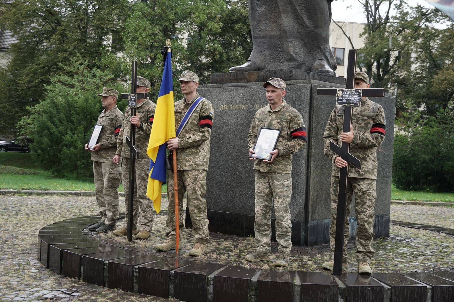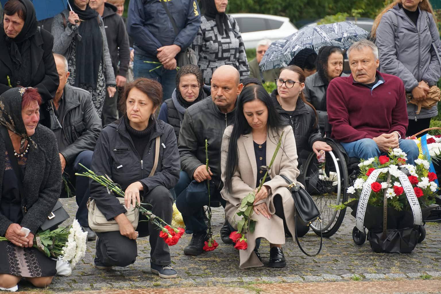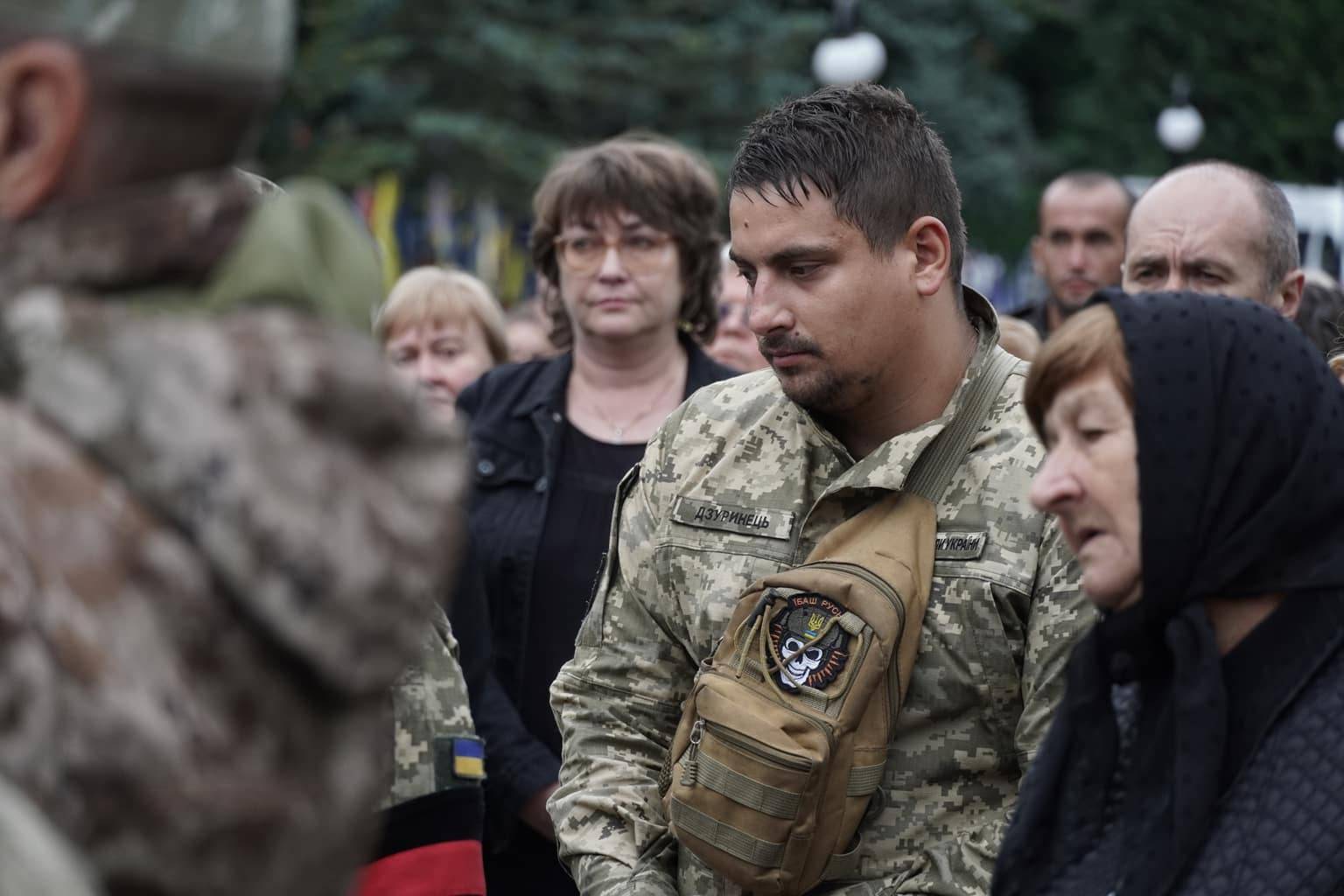 Попрощатися із захисниками на площі Народній прийшли рідні, друзі, колеги, військові, побратими, міський голова Богдан Андріїв та жителі Ужгорода.