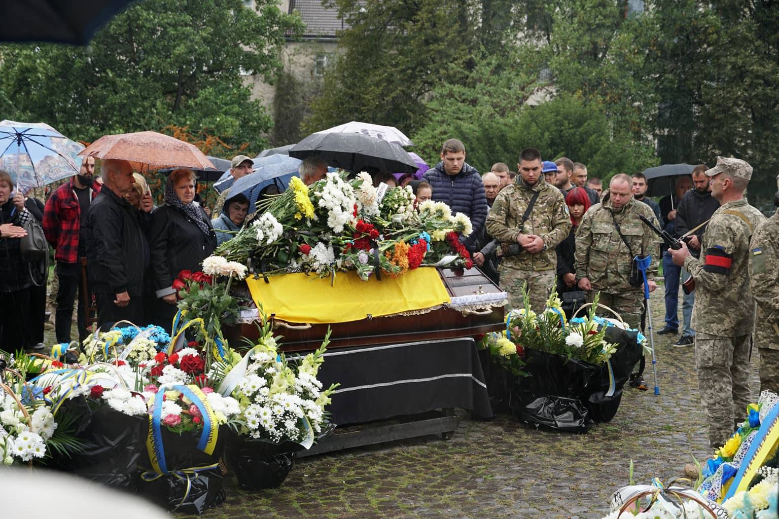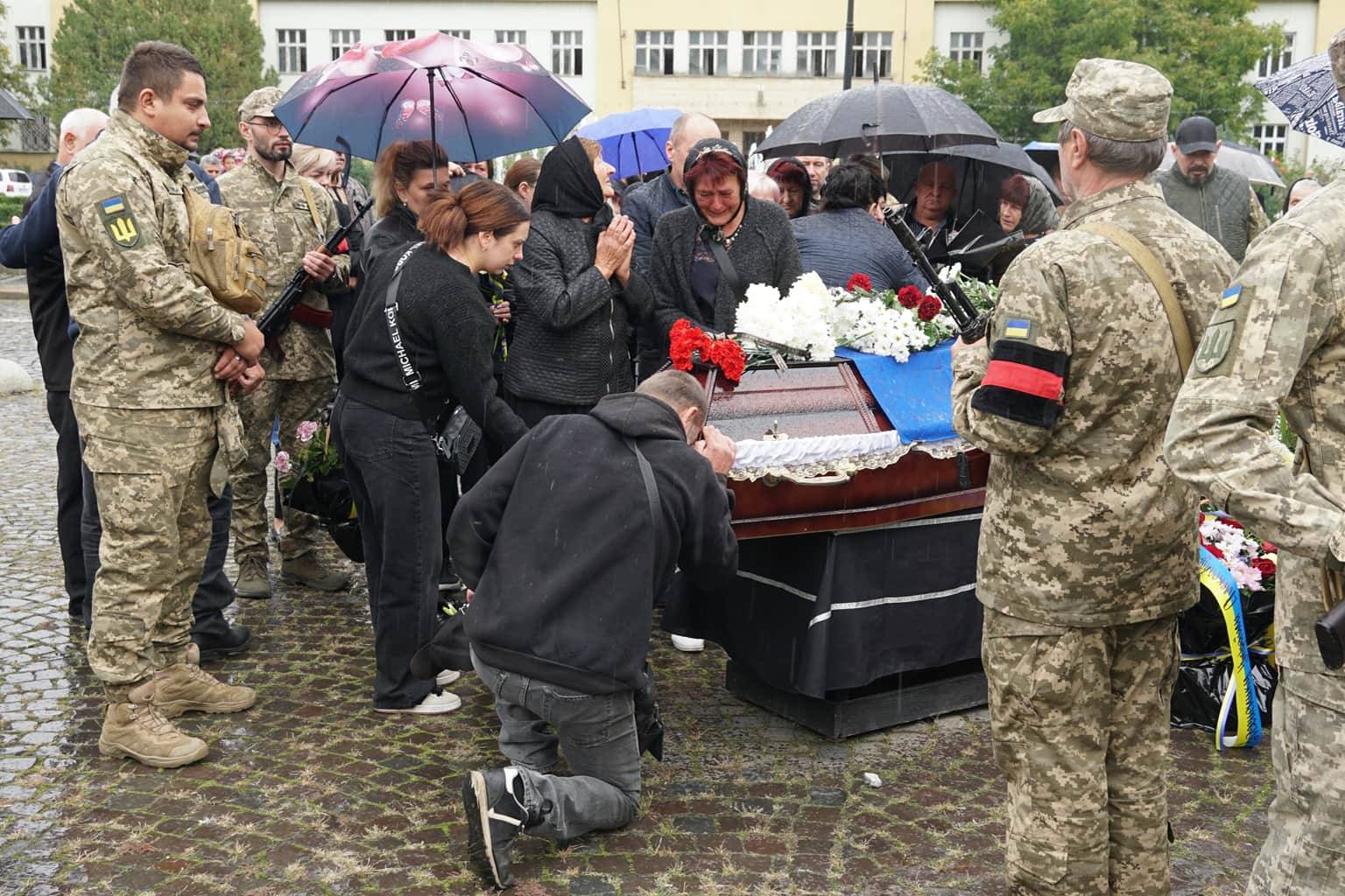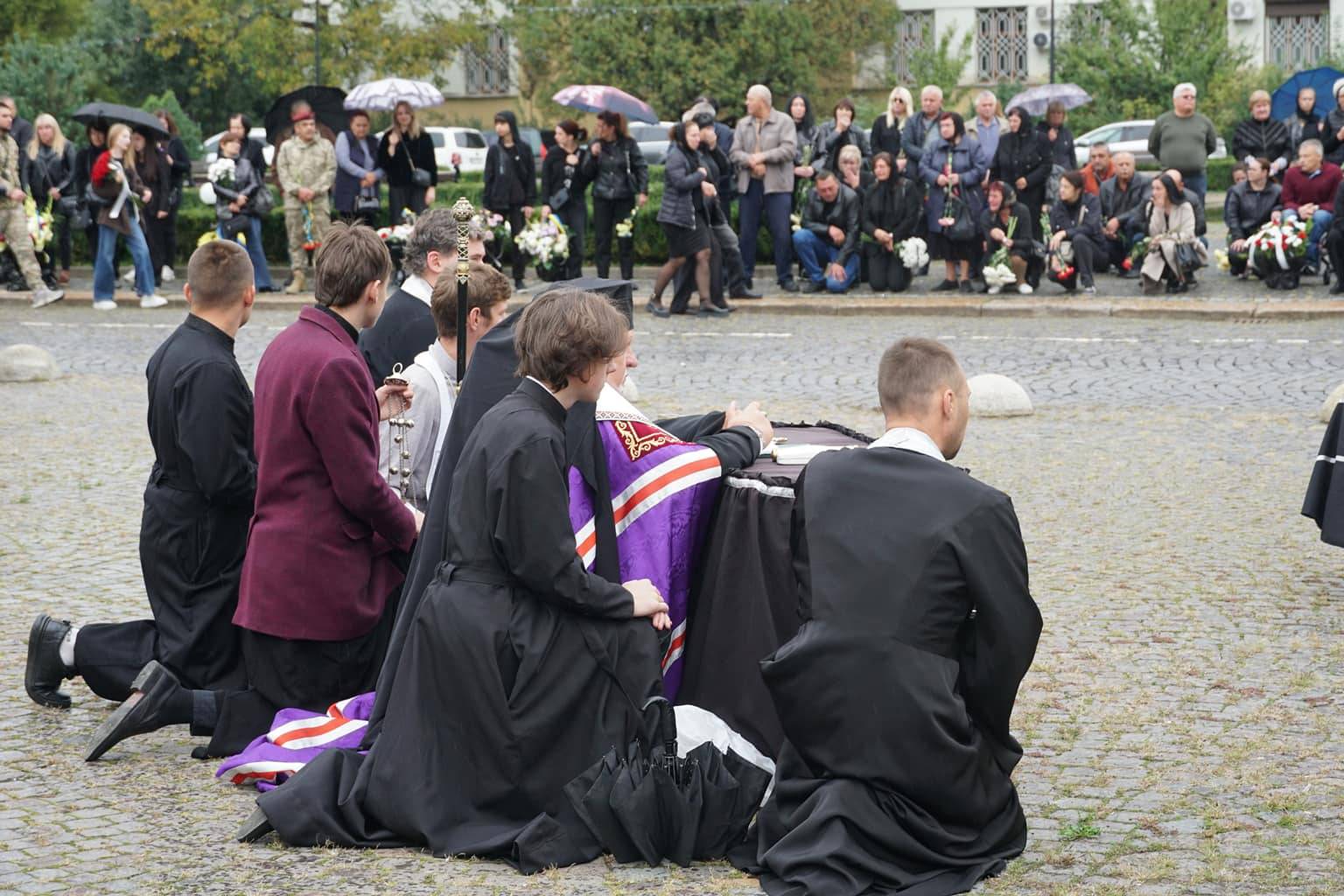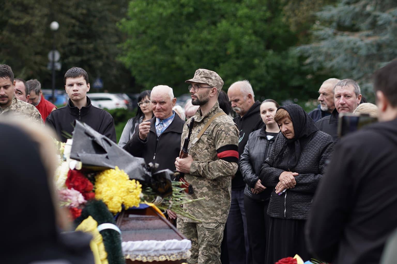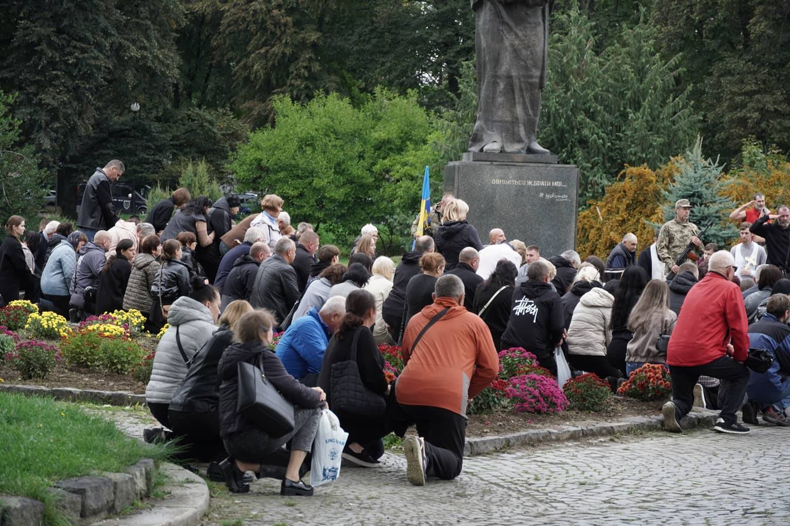 Попрощатися із захисниками на площі Народній прийшли рідні, друзі, колеги, військові, побратими, міський голова Богдан Андріїв та жителі Ужгорода.