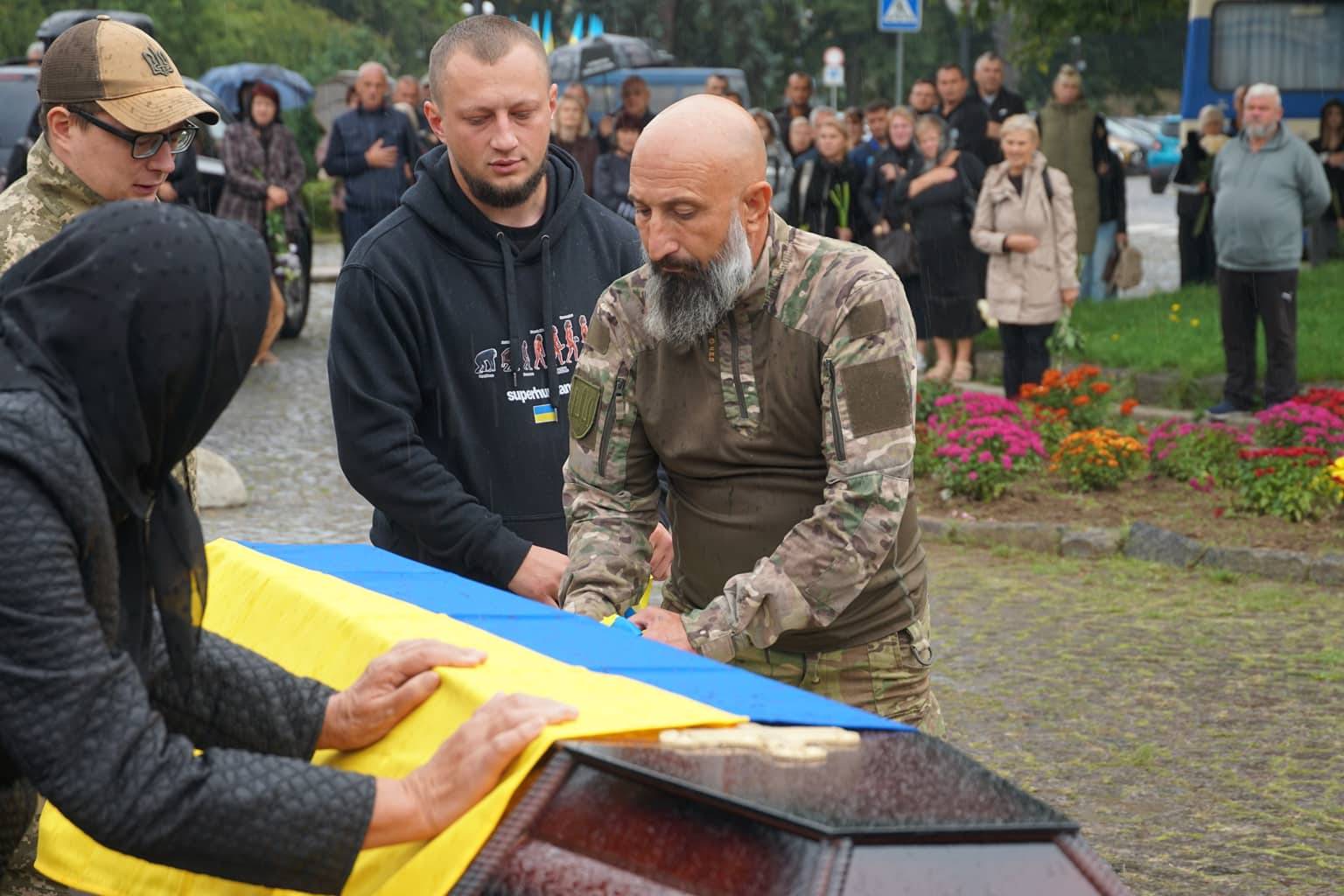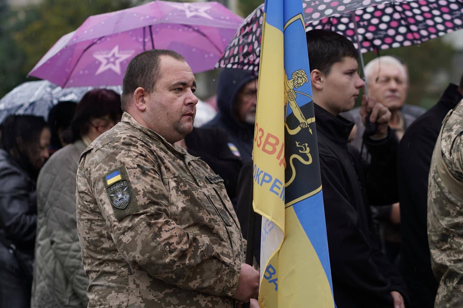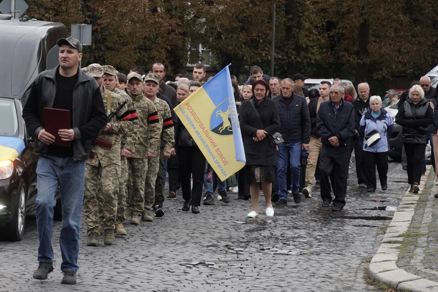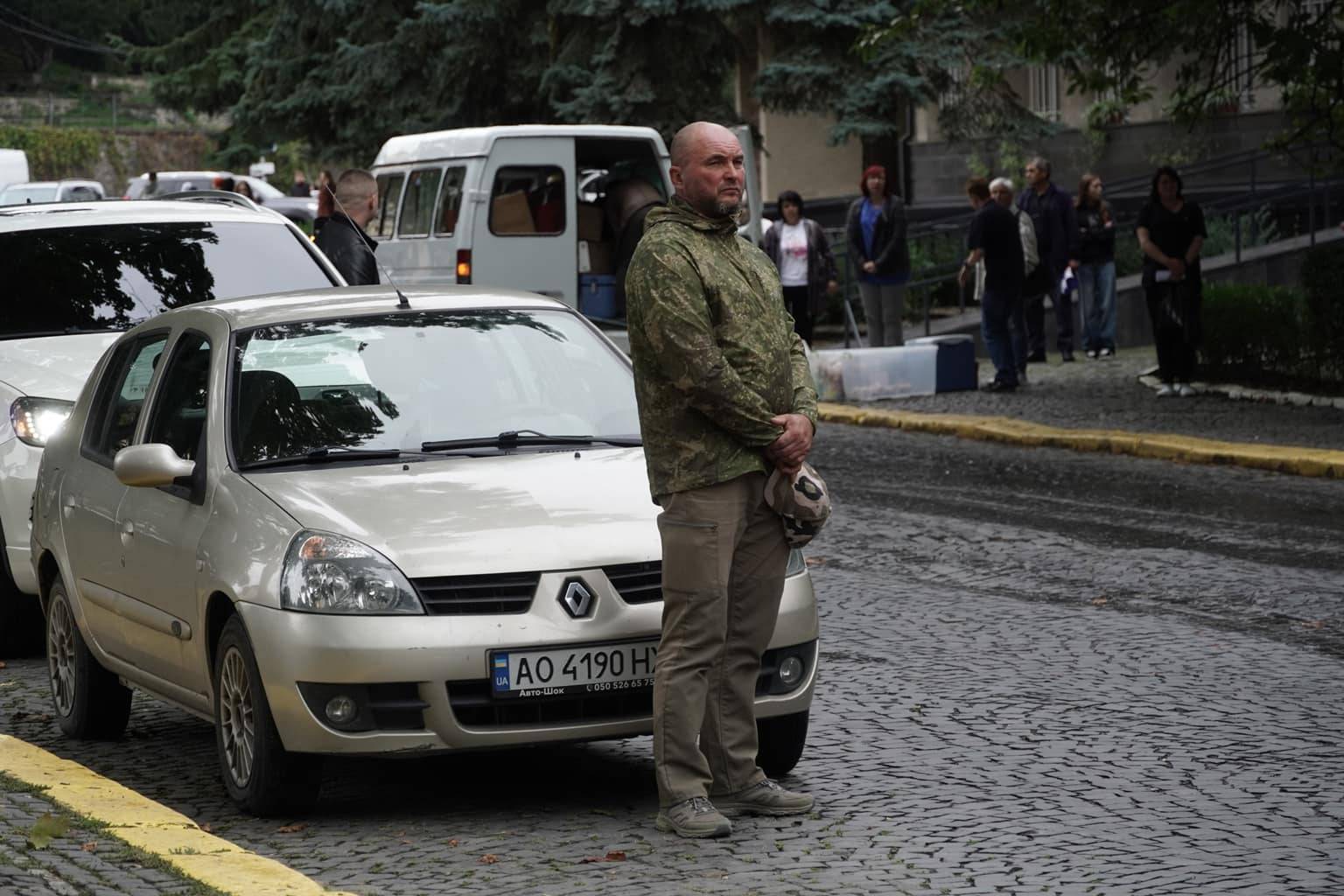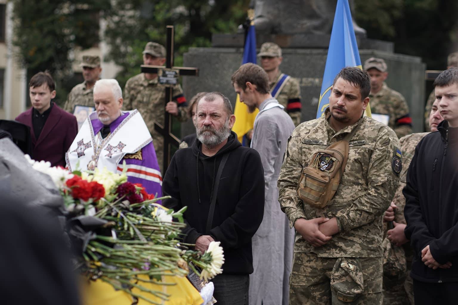 Попрощатися із захисниками на площі Народній прийшли рідні, друзі, колеги, військові, побратими, міський голова Богдан Андріїв та жителі Ужгорода.