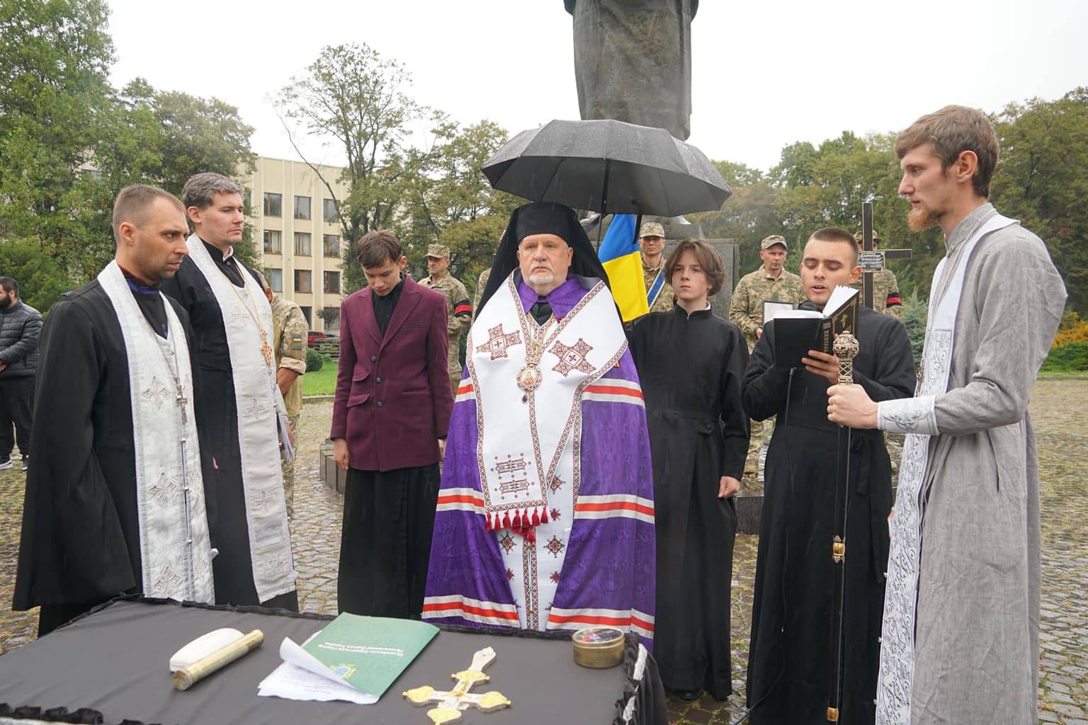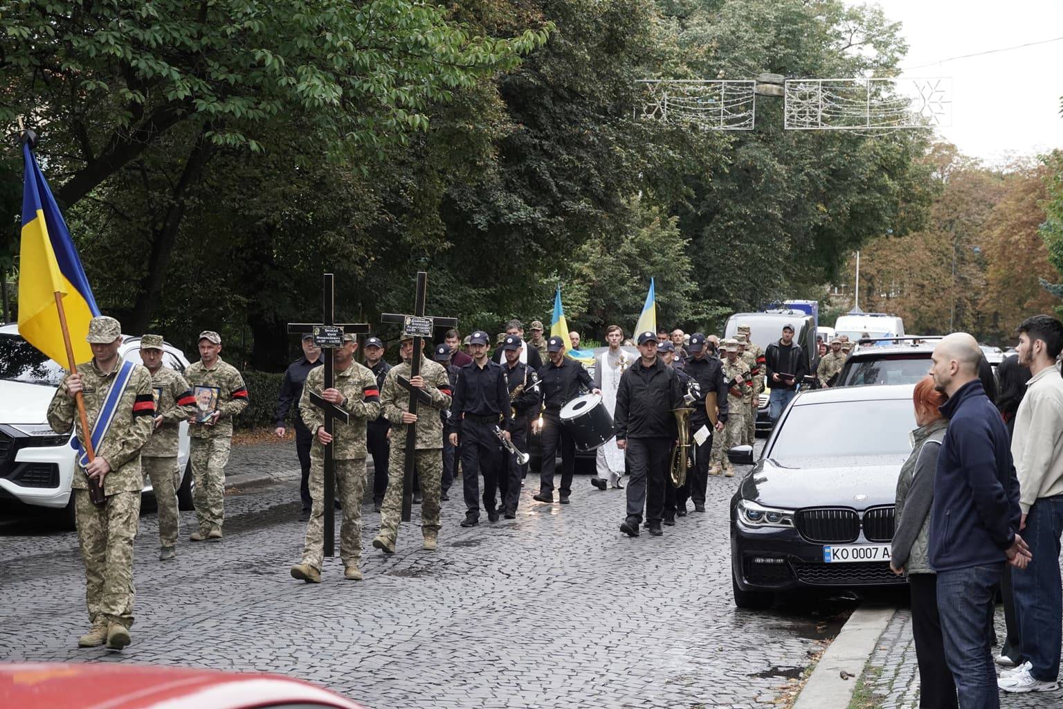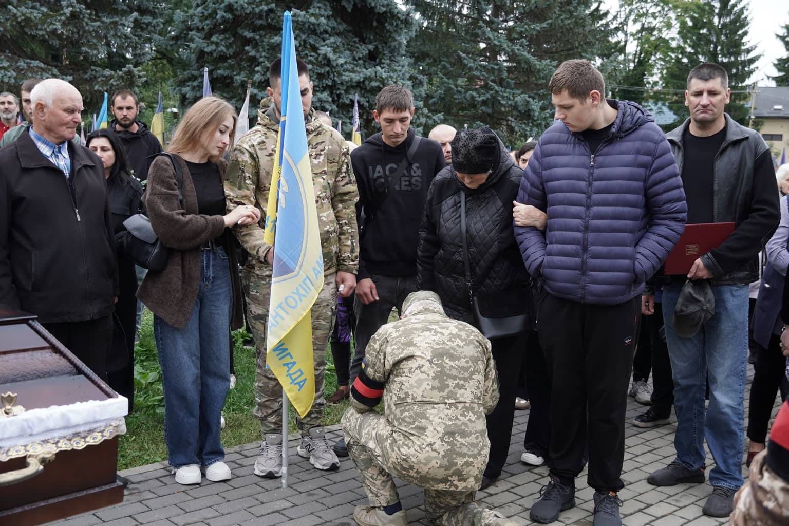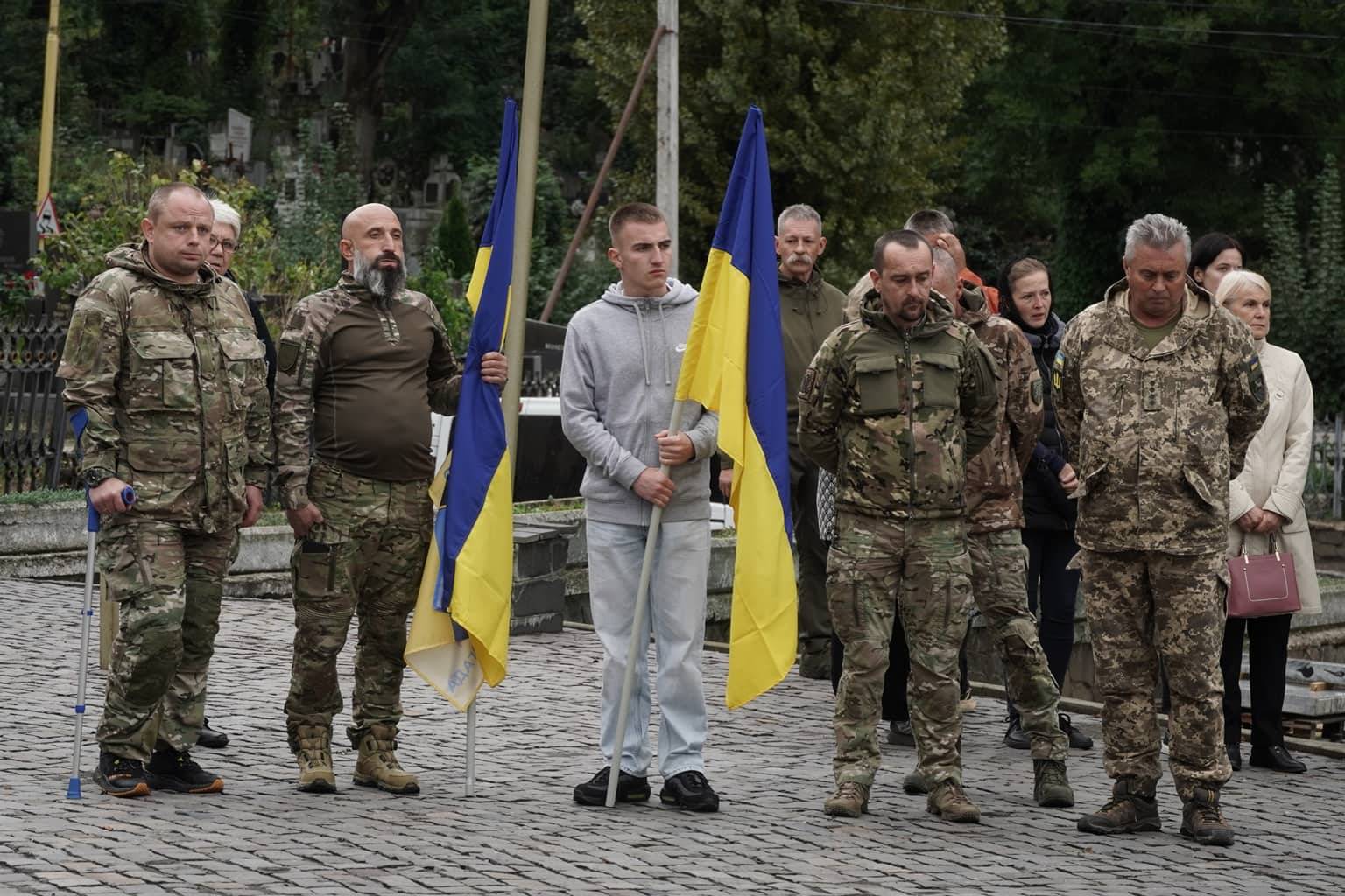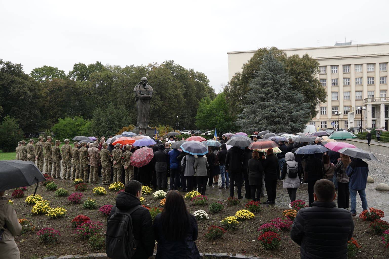 Попрощатися із захисниками на площі Народній прийшли рідні, друзі, колеги, військові, побратими, міський голова Богдан Андріїв та жителі Ужгорода.