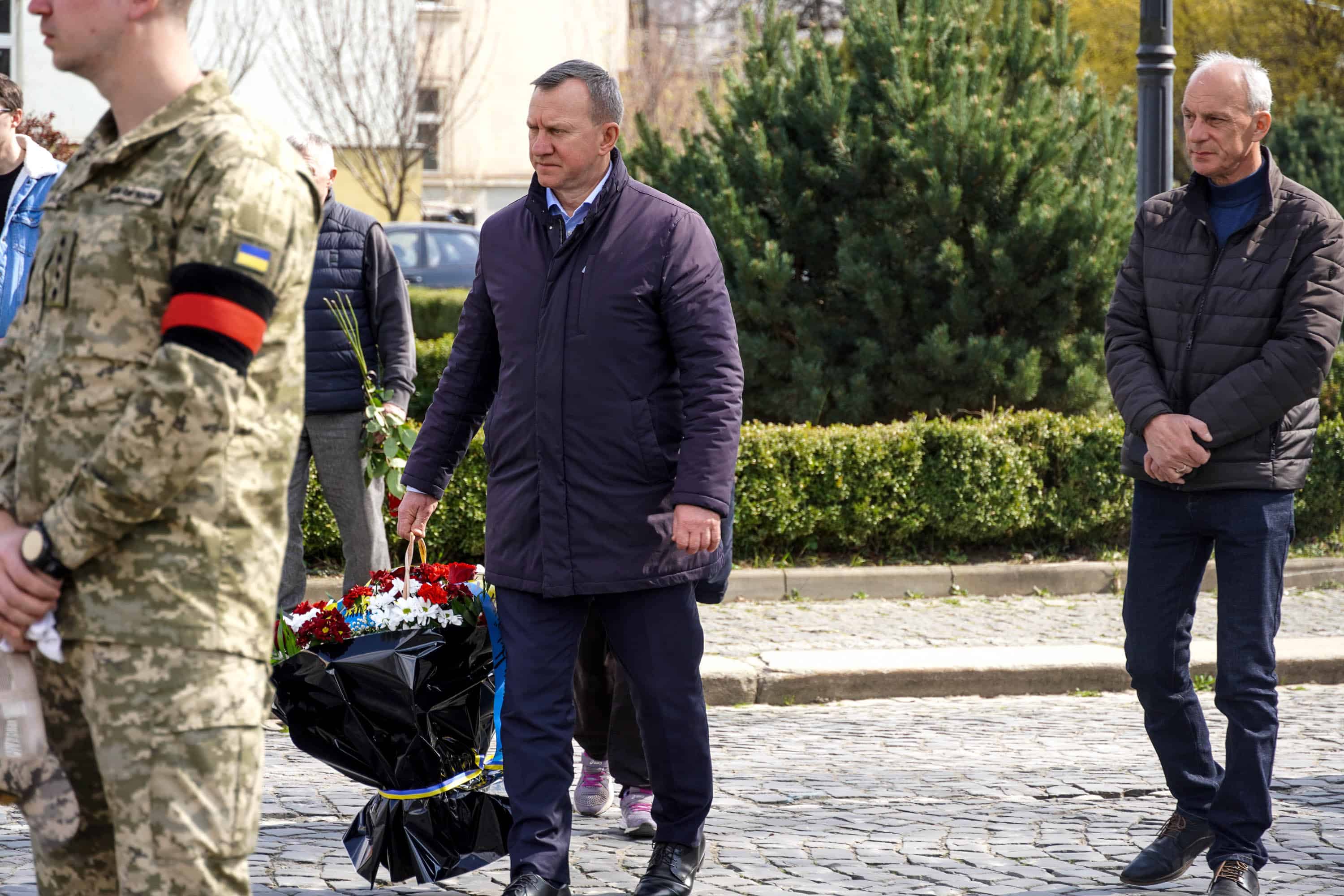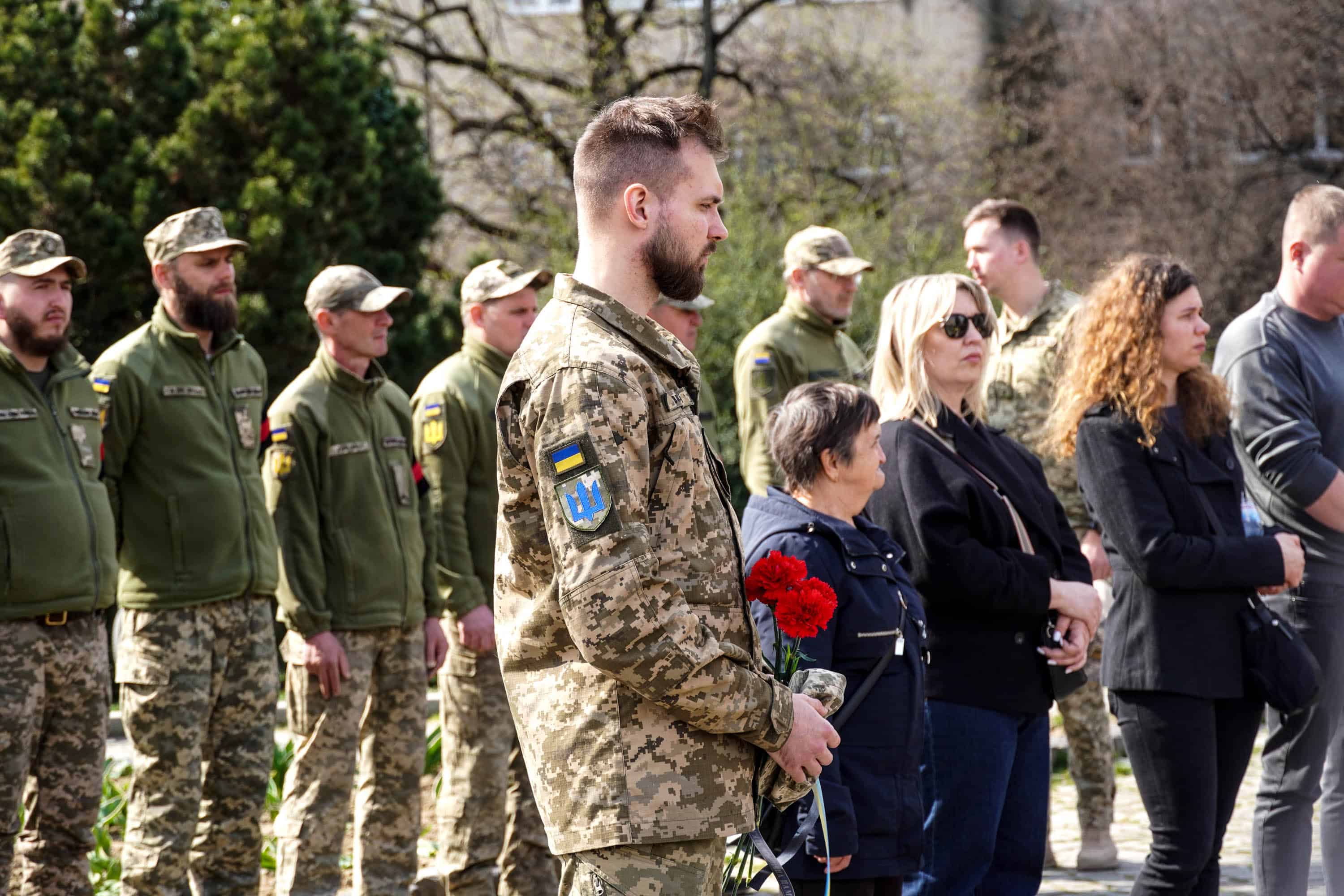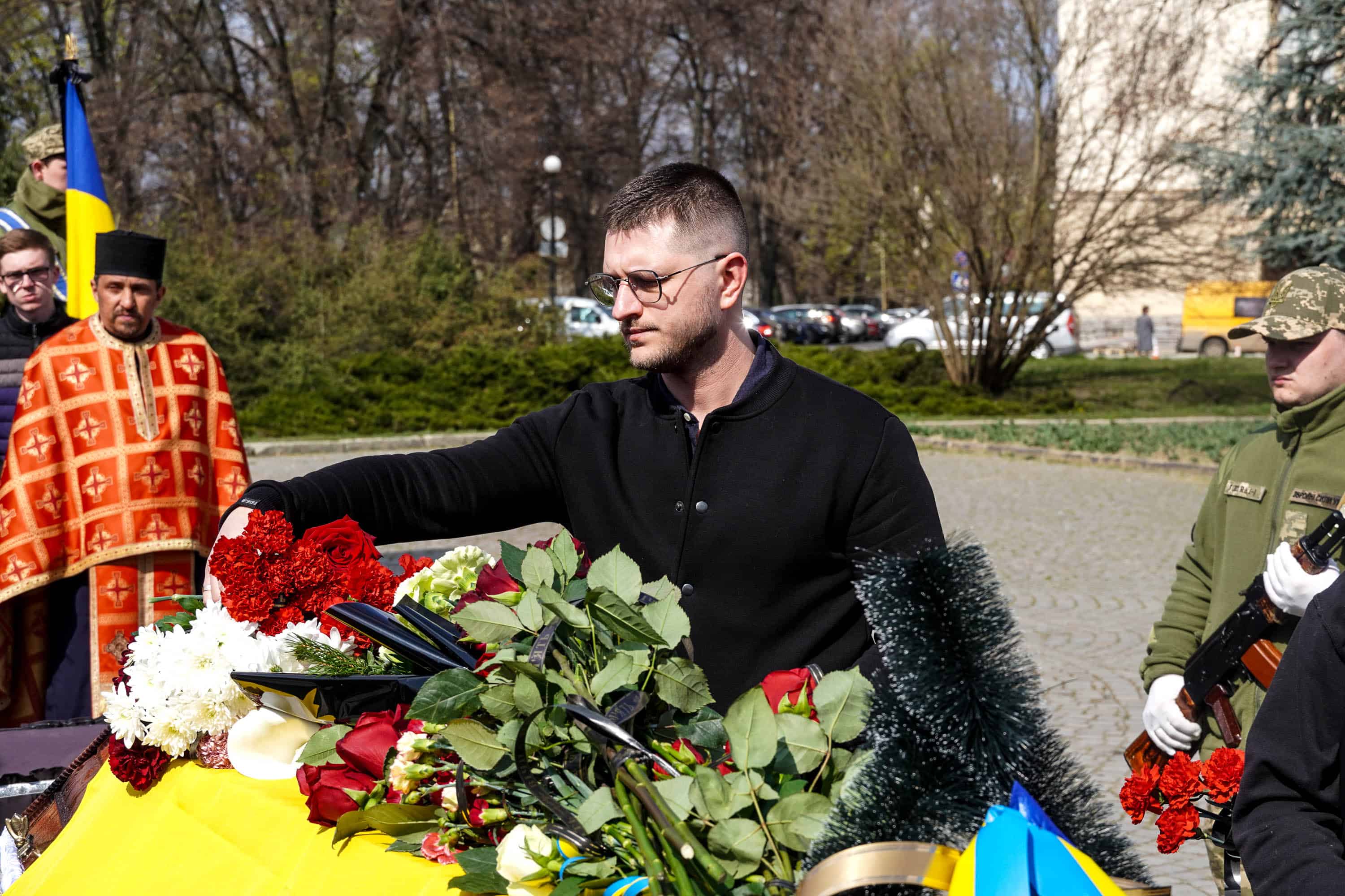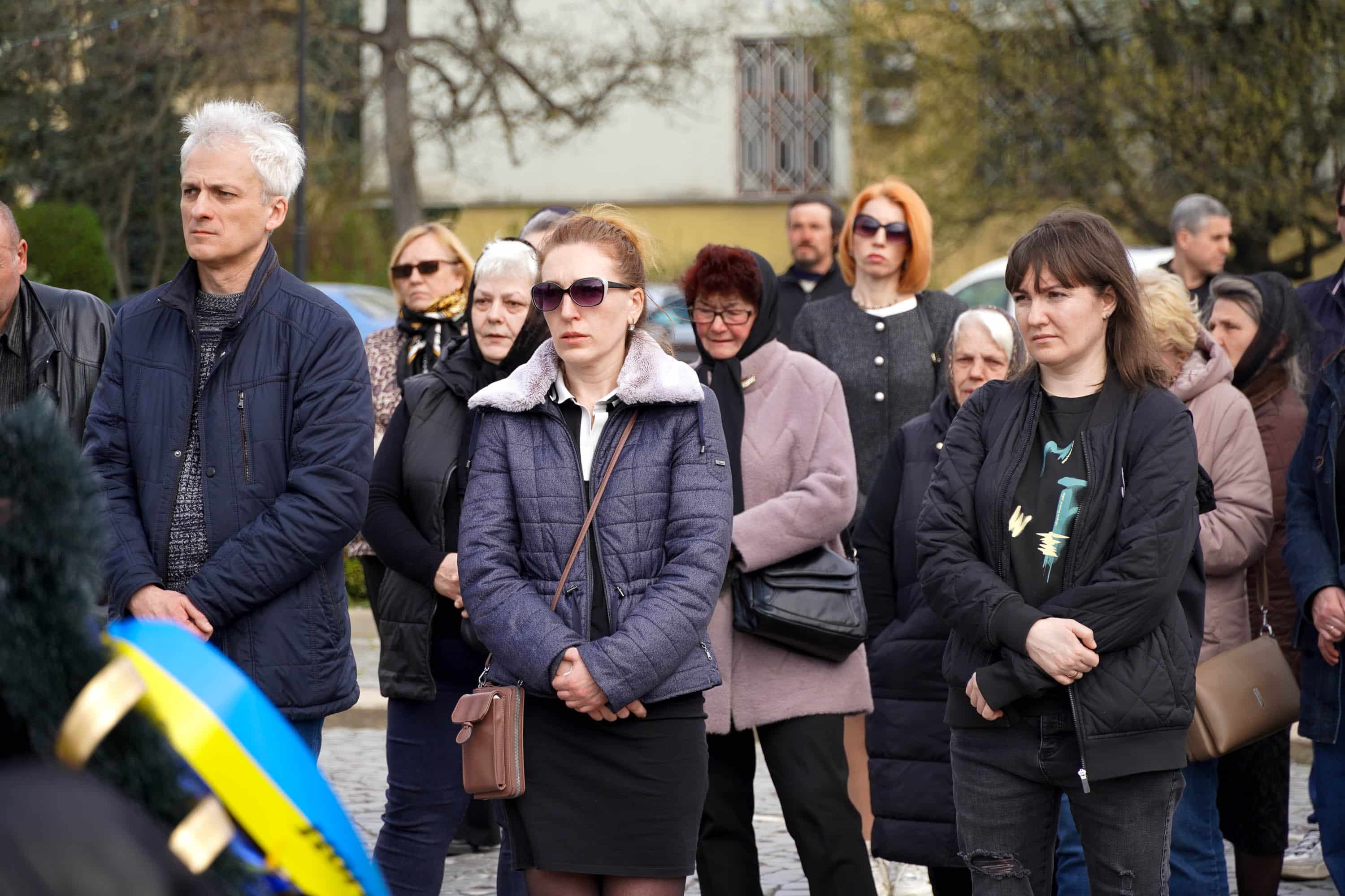 Віддати шану воїну прийшли рідні та близькі, колеги, побратими, військовослужбовці, міський голова Ужгорода Богдан Андріїв, містяни.