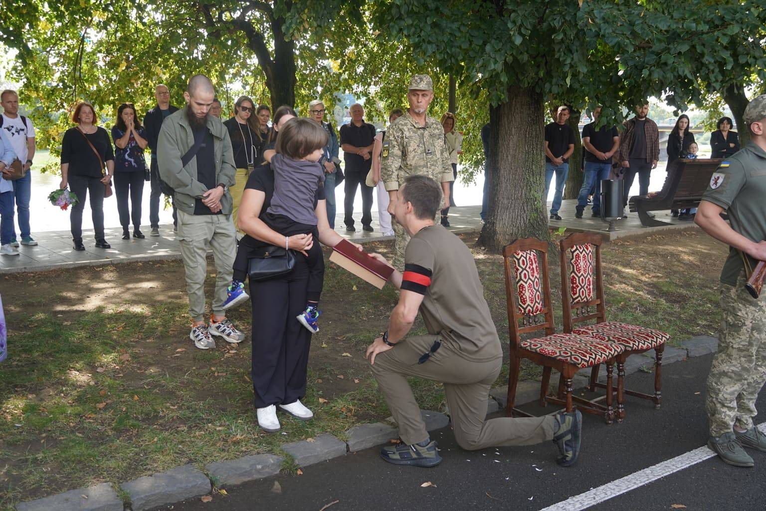 Прощалися із захисником сьогодні на набережній Незалежності. Віддати шану воїну прийшли рідні, міський голова Ужгорода Богдан Андріїв, військові, містяни.