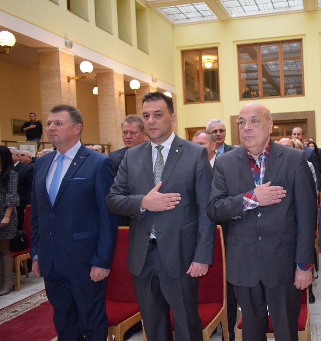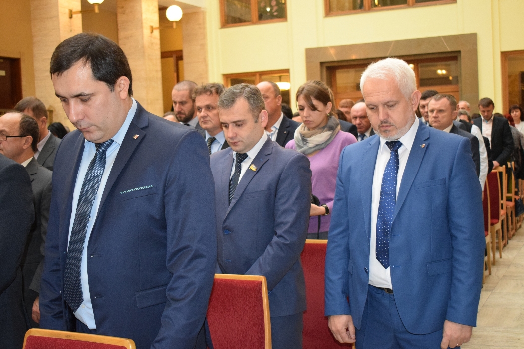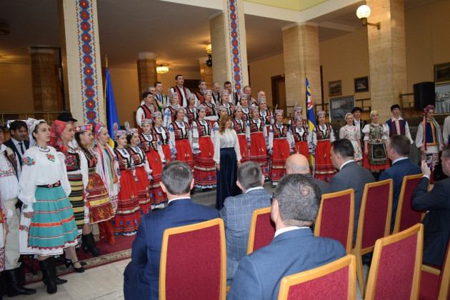 На початку зібрання Заслужений академічний Закарпатський народний хор виконав Гімн України та символічну «Пливе кача», під яку хвилиною мовчання вшанували загиблих за незалежність нашої держави.