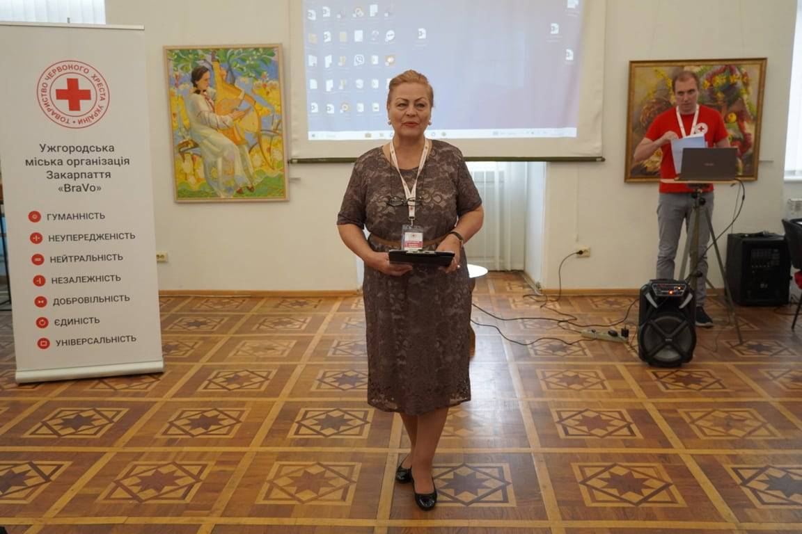 Начальниця відділу релокації бізнесу та взаємодії з гуманітарними та благодійними організаціями управління економічного розвитку міста Юліана Бокоч подякувала членам організації Червоного Хреста за роботу та допомогу, які надають переселенцям та місцевому населенню, за активну участь у роботі Координаційної ради з питань ВПО при Ужгородській міській раді.