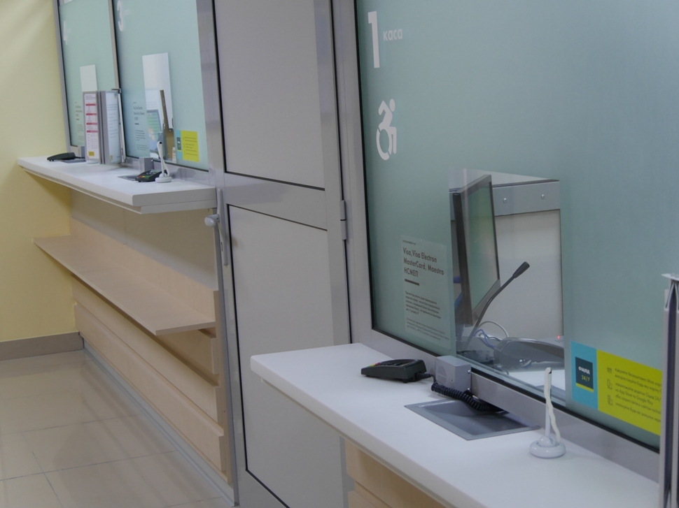 Біля відділення та в самому приміщенні викладена спеціальна спрямовуюча плитка для незрячих, каси, крім звичайного формату, є і такі, що пристосовані для людей на візках та зі спеціальними пристроями (мікрофоном, навушниками) для слабочуючих. Передбачені зручні крісла для очікування, туалети з усіма зручностями для відвідувачів з особливими потребами і навіть ніша для милиць. Працівники відділення, а їх більше десятка, пройшли спеціальне навчання, як допомогти клієнтам з вадами слуху, зору тощо.