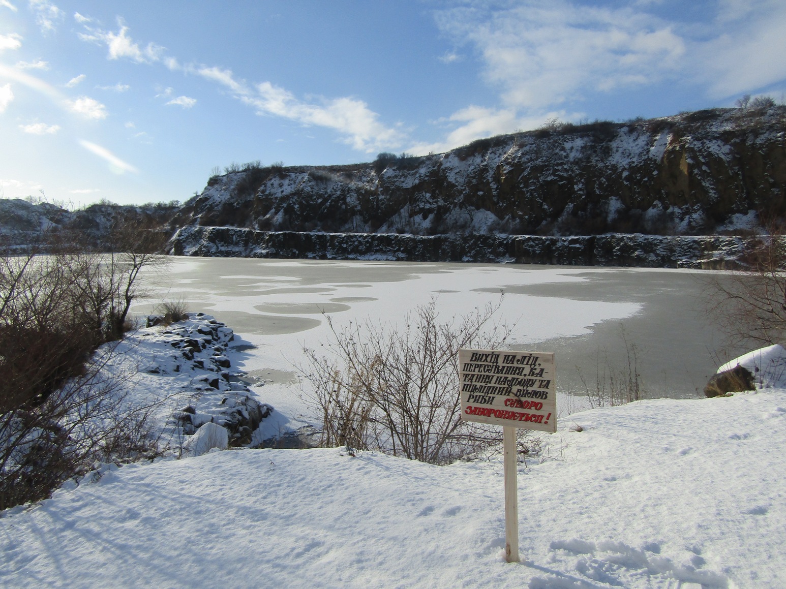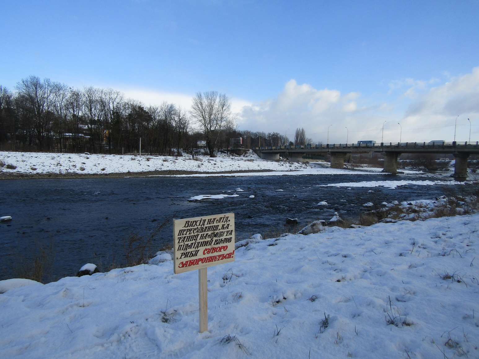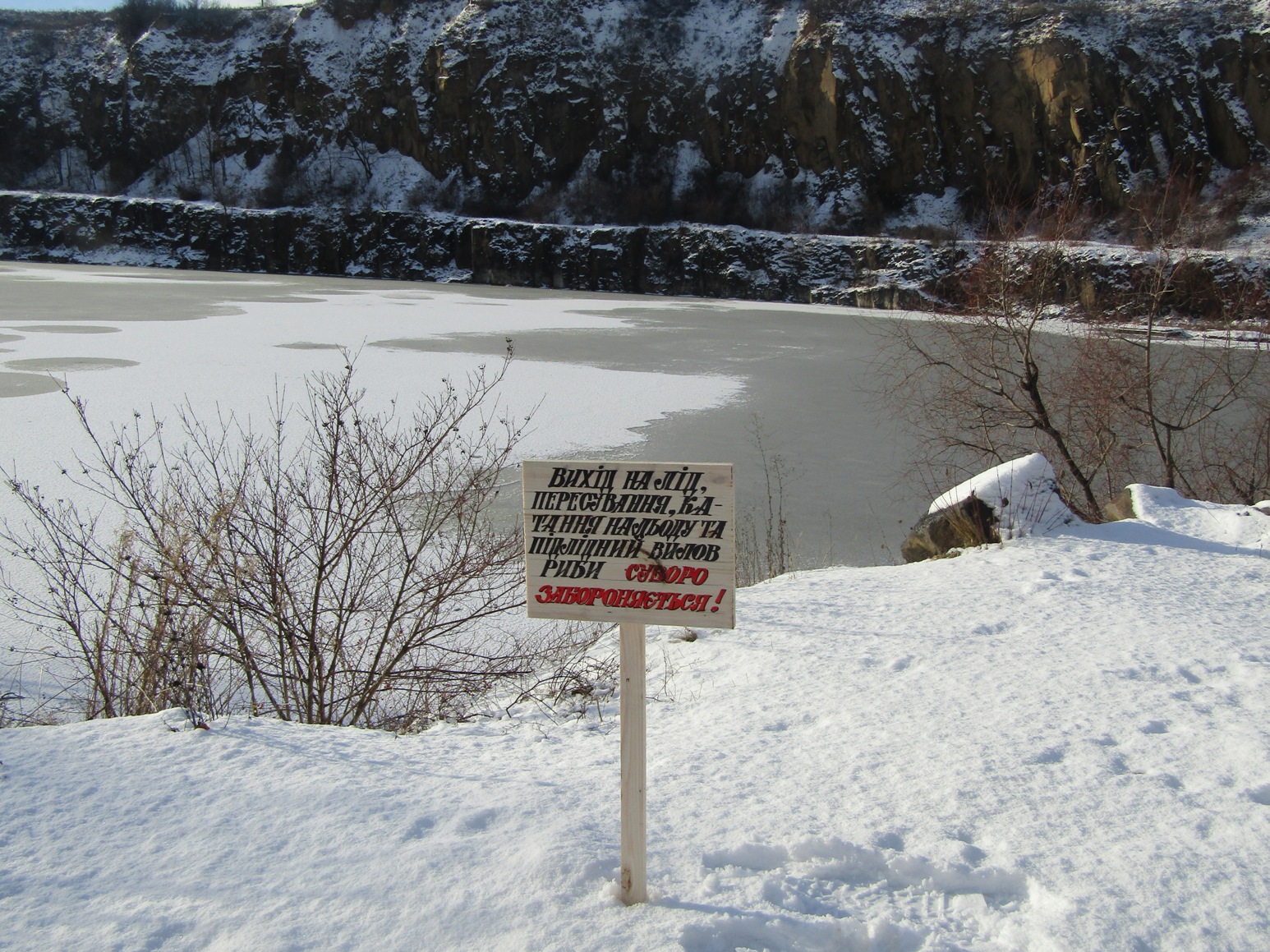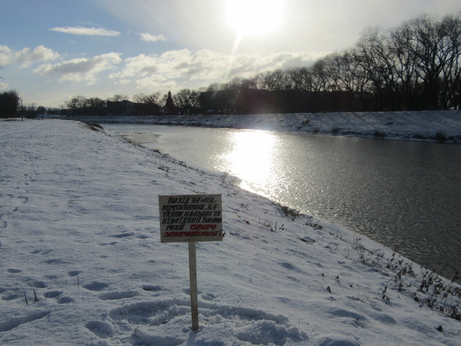 Відповідно до рішення виконкому Ужгородської міської ради, з метою попередження виникнення надзвичайних ситуацій на воді у зимовий період у місті біля водойм встановили попереджувальні таблички, які забороняють вихід на лід, пересування та катання на льоду, підлідний вилов риби.