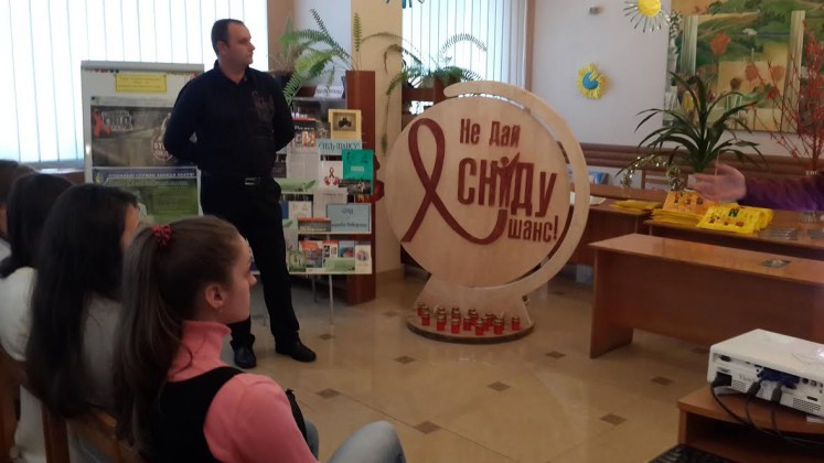 Продовжилася акція під стінами бібліотеки флешмобом «Скажи СНІДу ні!». У приміщенні бібліотеки відбулася інформаційна година «Не дай СНІДу шанс!», де студенти ознайомили присутніх з інформацією про поширення ВІЛ-інфекції в Україні та світі, основних шляхів інфікування населення, дізналися більше про наркоманію, та їх згубний вплив на здоров’я. Студентка 4 курсу спеціальності «Видовищно-театралізовані заходи» Наталія Сентимрей зачитала своє звернення до молоді. Також учасники мали змогу переглянути відеоролики з актуальних питань, пов’язаних із ВІЛ-інфекцією/СНІДом, та реальні історії із життя. Завершився захід запаленням свічок за померлими від ВІЛ-інфекції/СНІДу.