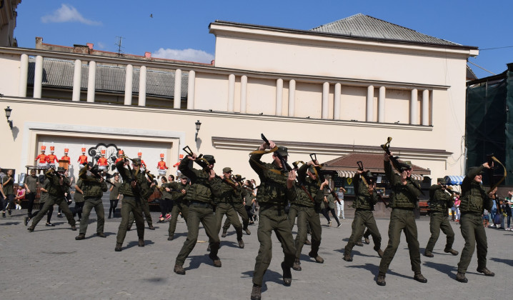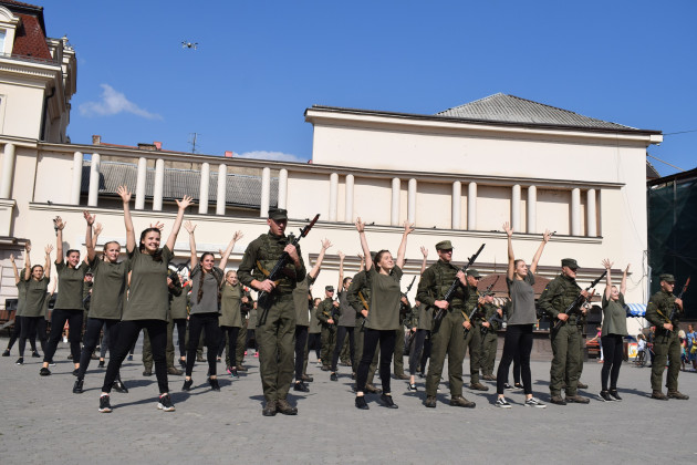 Наприкінці бійці Національної Гвардії України разом зі студентами Ужгородського коледжу культури і мистецтв подарували містянам і гостям обласного центру тематичний “Флешмоб гарного настрою” (керівники-постановники – заслужені працівники культури України Ірина Шевцова та Михайло Шютів). Ведучі підсумували захід словами, які переконливо визначають роль і призначення національного війська – “Служити українському народові”, і додали, що сила і міць української держави – у єдності армії та народу.