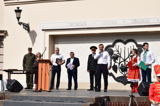 Розпочали урочистості з виконання Гімну України. Вітали військових, зокрема, Ужгородський міський голова Богдан Андріїв, командир 4 стрілецького батальйону військової частини 3002 Національної Гвардії України підполковнику Олег Конопляник, представник Апеляційного суду Закарпатської області Іван Стан.
