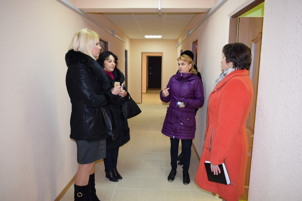 Насамперед Андріана Антонівна поспілкувалася з керівником центру Іриною Кремінською. Як розповіла Ірина Миколаївна, наразі роботи наближаються до завершення, залишилося у деякі кабінети розставити меблі, докупити інвентар. А так, у принципі, центр готовий приймати вихованців.
