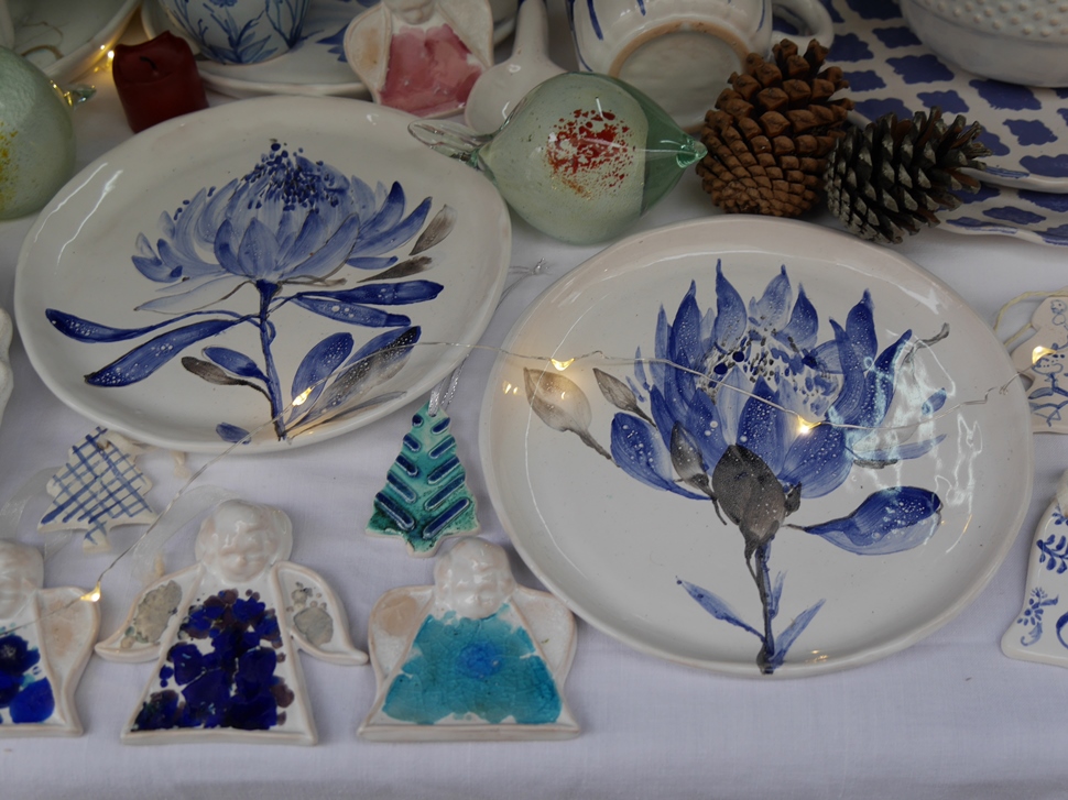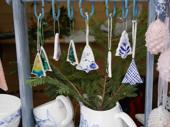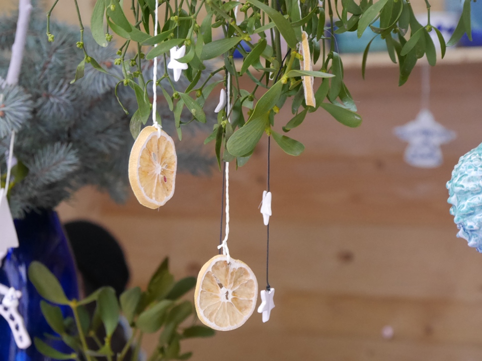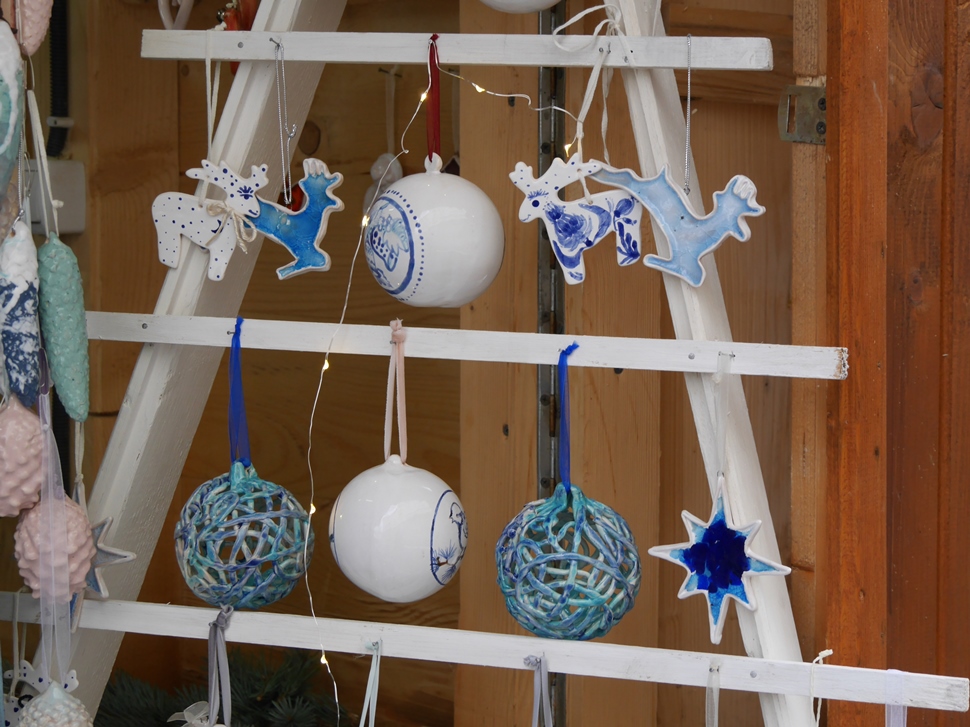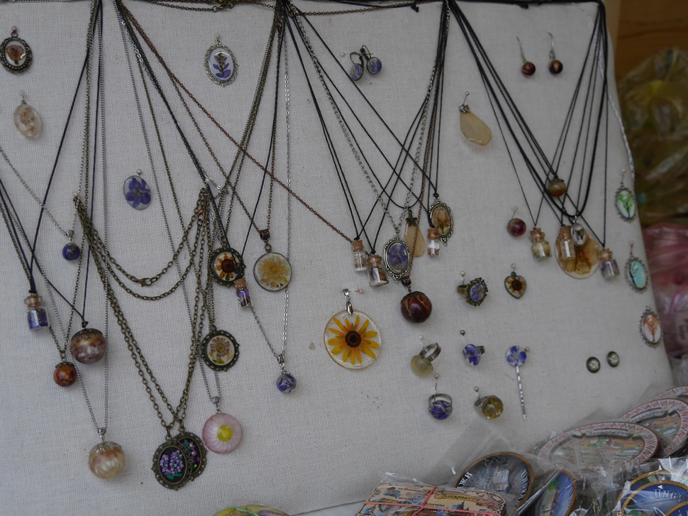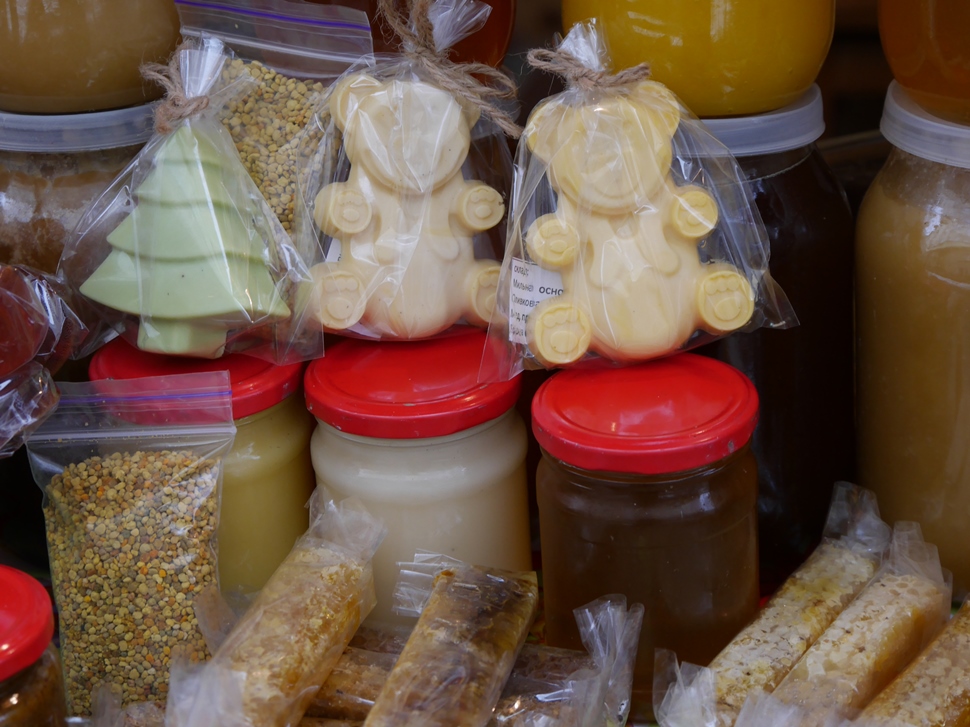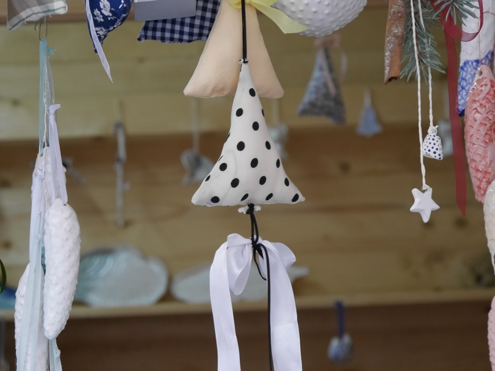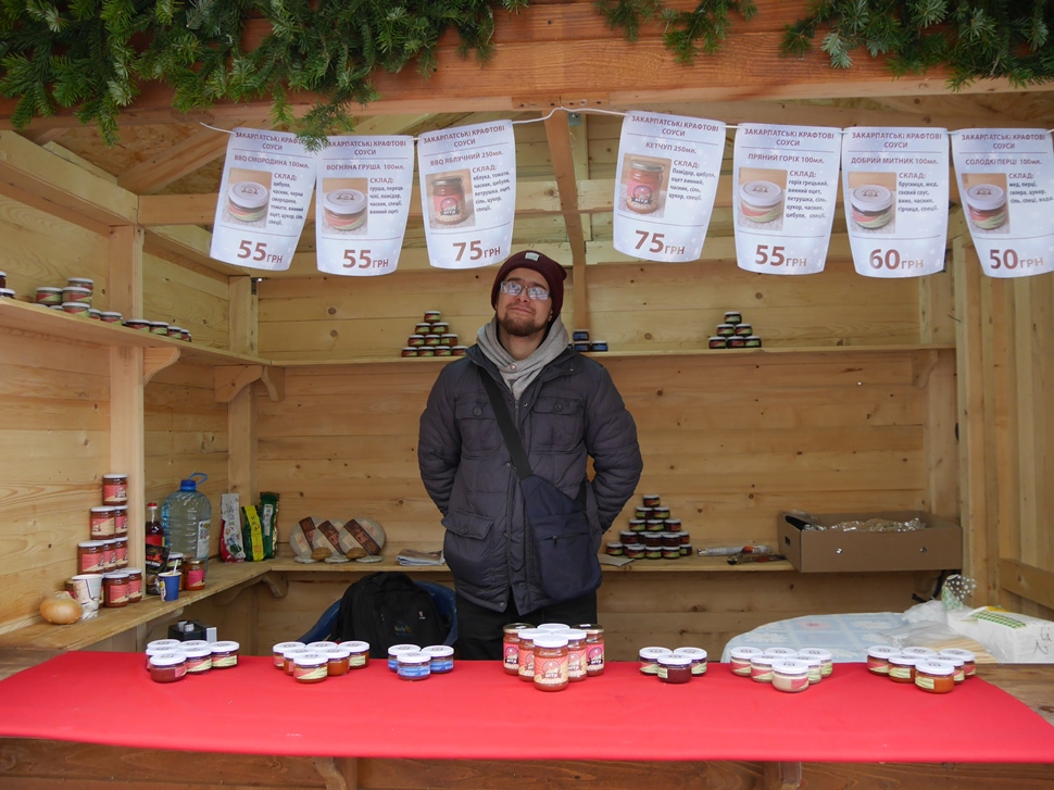 Ще не в усіх, але вже в багатьох будиночках підприємці представили свою продукцію. Тут можна знайти оригінальні прикраси на ялинку, різноманітні сувеніри, керамічні вироби, в’язані теплі речі, натуральні чай, вино, мед і медопродукти, закарпатські крафтові соуси тощо.