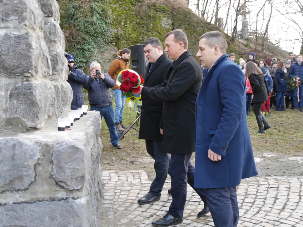 О 15-ій годині в мікрорайоні Радванка пройшло зібрання біля старовинного меморіалу під андезитовою скелею поруч із кладовищем та вулицею Стефаника. Стела зведена у перші післявоєнні роки, на ній викарбувані імена місцевих мешканців, які загинули в ході бойових дій.