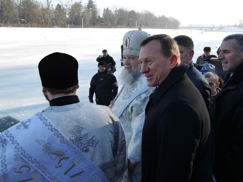 Уже традиційно владика Феодор вручив посуд із з освяченою водою Ужгородському міському голові Богдану Андріїву. Богдан Євстафійович теж привітав ужгородців із величним християнським святом, побажав усім міцного здоров’я, добробуту, мирного неба і Божого благословення, подякував священнослужителям за великі труди на благо нашого міста.