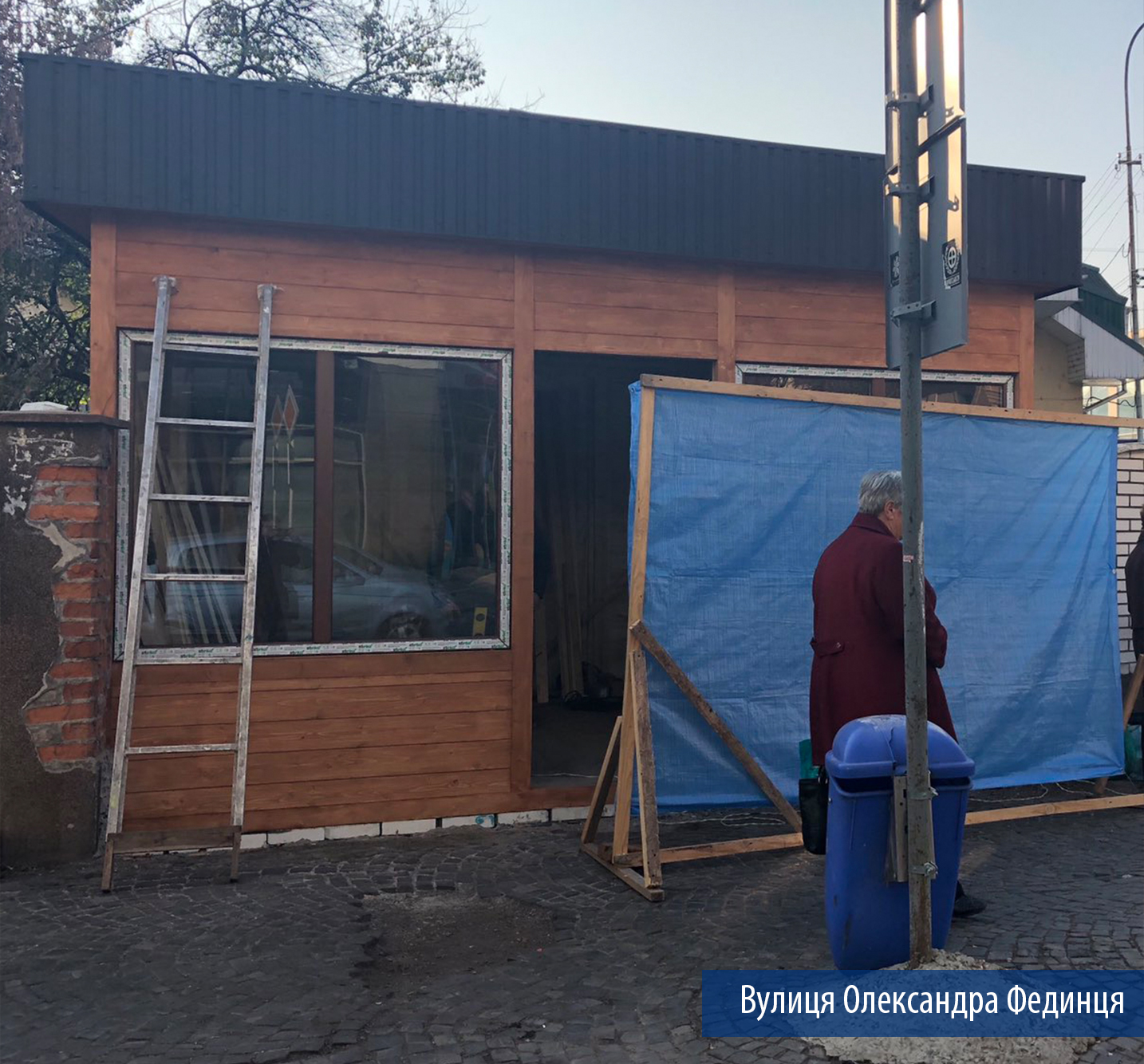 На вулиці Олександра Фединця на власній земельній ділянці, яка відведена під комерційну діяльність, будують тимчасову споруду для торгівлі.
