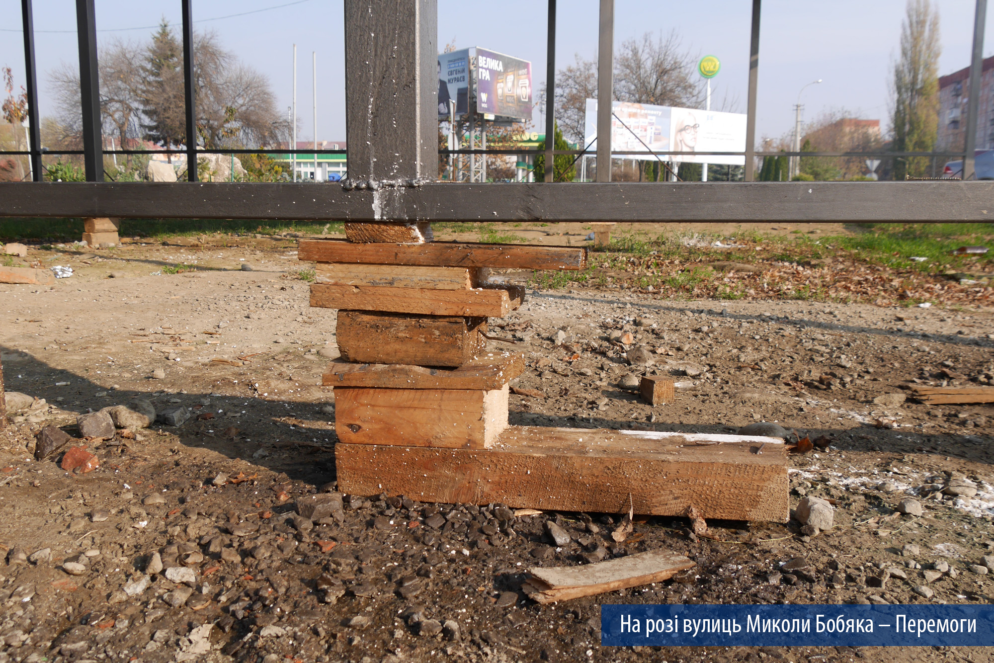 Так, на розі вулиць Миколи Бобяка – Перемоги на час обстеження виявили металевий безфундаментний каркас, розташований на двох земельних ділянках. Вони загальною площею 0,01 га кожна, відведені під будівництво гаражів і розташовані таким чином, що одна земельна ділянка – за межами червоної лінії, а друга – частково в межах червоної лінії вулиці Перемоги. Конструкції металевого каркасу знаходяться в межах червоної лінії. Роботи виконувалися без відповідних дозвільних документів та паспорта прив’язки тимчасової споруди.