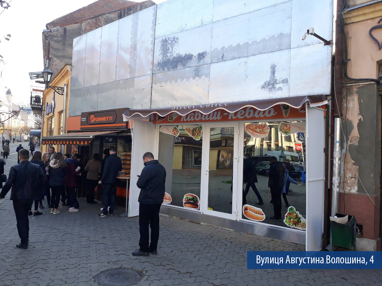 На вул.Августина Волошина,4 відсутній паспорт прив’язки на тимчасову споруду.
