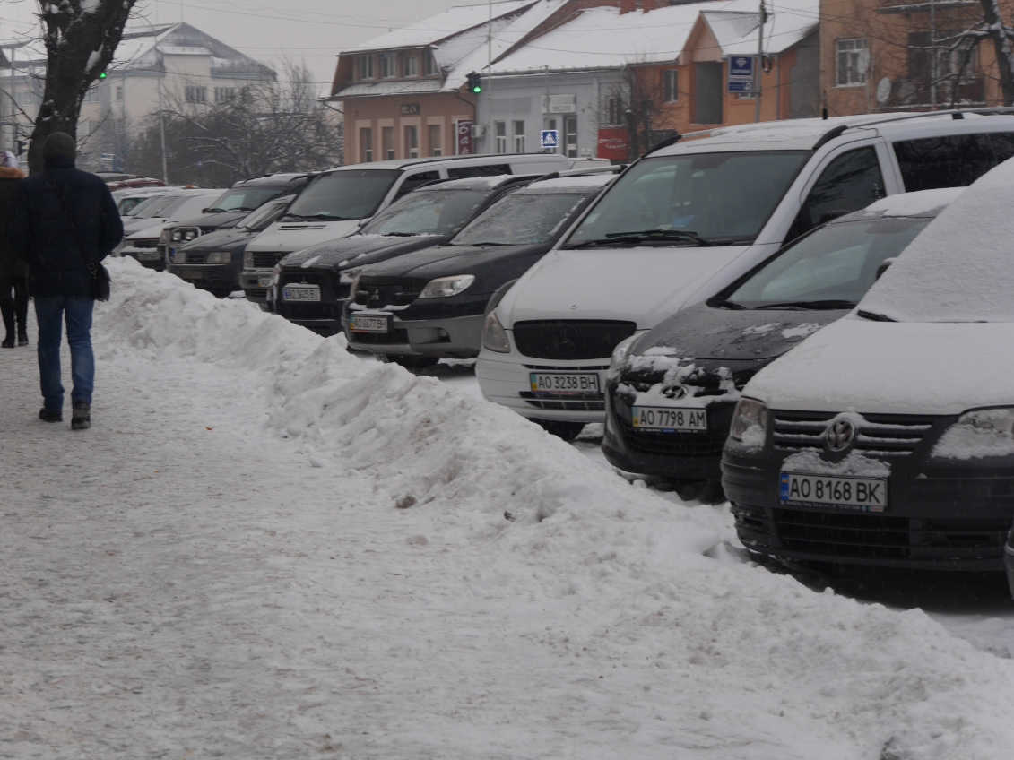 Проте при таких складних погодних умовах, як зараз, хаотично прикарковані машини – заважають не лише пішоходам – це ще й велика проблема для прибирання, очищення Ужгорода від снігу, посипання протиожеледною сумішшю.