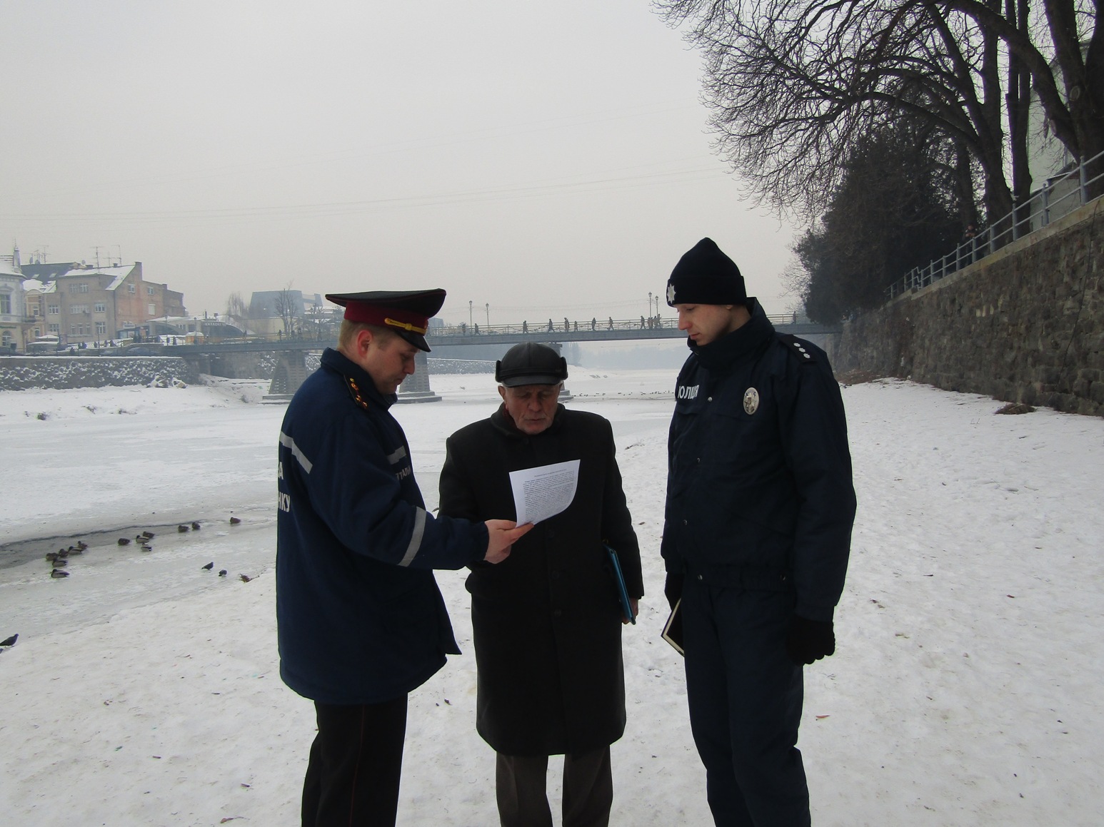Також ужгородцям роздавали листівки, де, зокрема, вказано, які ознаки нестійкої криги, як уберегтися і що робити людині, котра таки провалилася в холодну воду. Інформування проводили біля водойм, де у зимовий період найбільше полюбляють «розваги» на льоду – річки Уж та озера «Кірпічка».