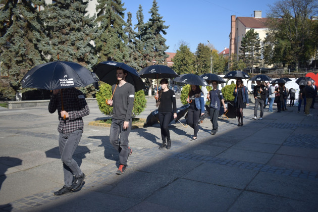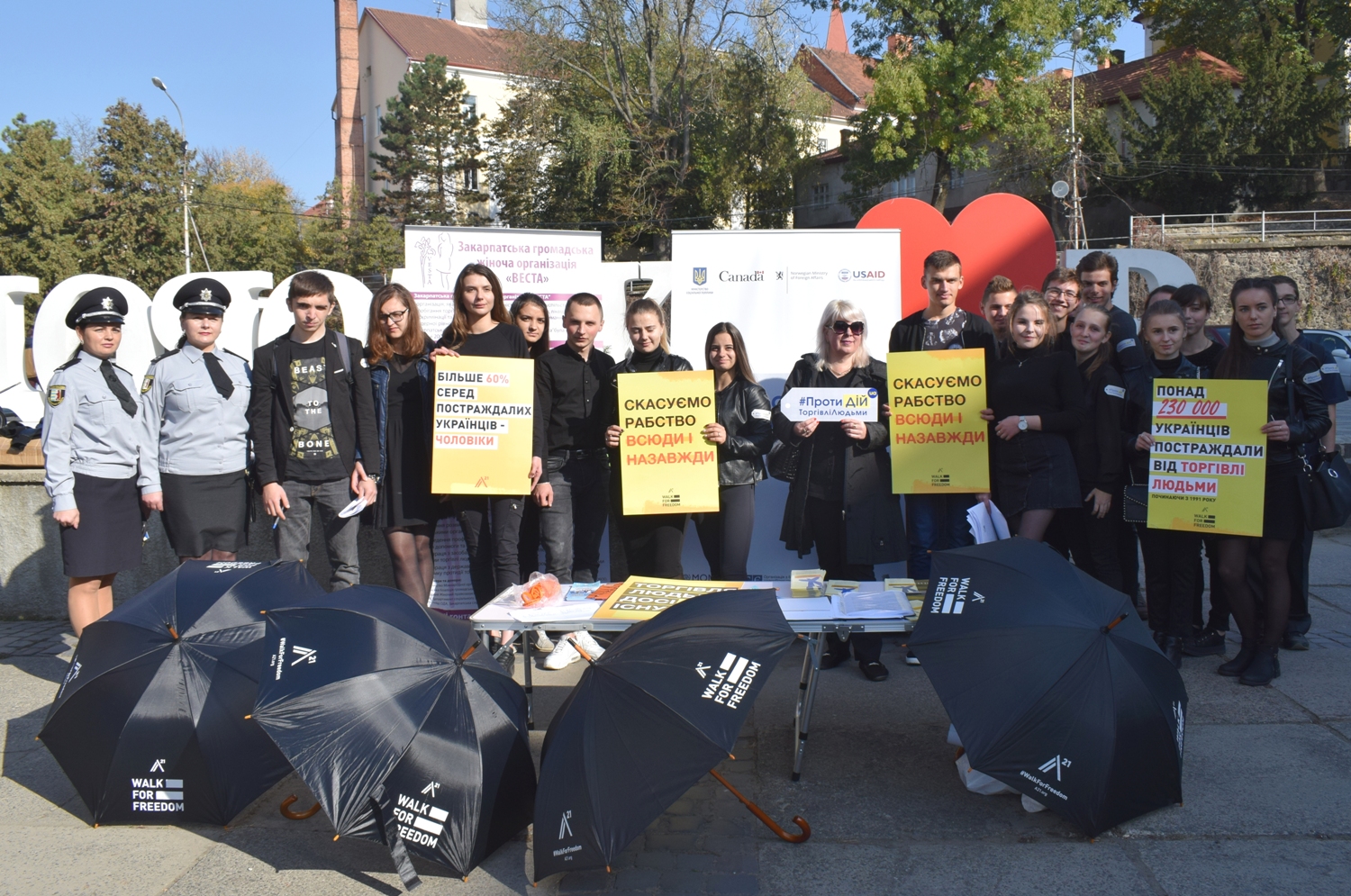 Долучилися до «Ходи за свободу» студенти відділення соціології та соціальної роботи УжНУ, правоохоронці, члени Закарпатської громадської жіночої організації «Веста», представники департаменту праці та соціального захисту населення Ужгородської міської ради, волонтери тощо. Від площі Поштової учасники мовчазної акції з плакатами, у чорному одязі та під парасолями такого ж кольору пройшли містом, зокрема набережною Незалежності, вулицями Корзо, Августина Волошина, Олександра Довженка та повернулися назад на площу Поштову, де продовжили інформувати містян та гостей Ужгорода про проблему торгівлі людьми.