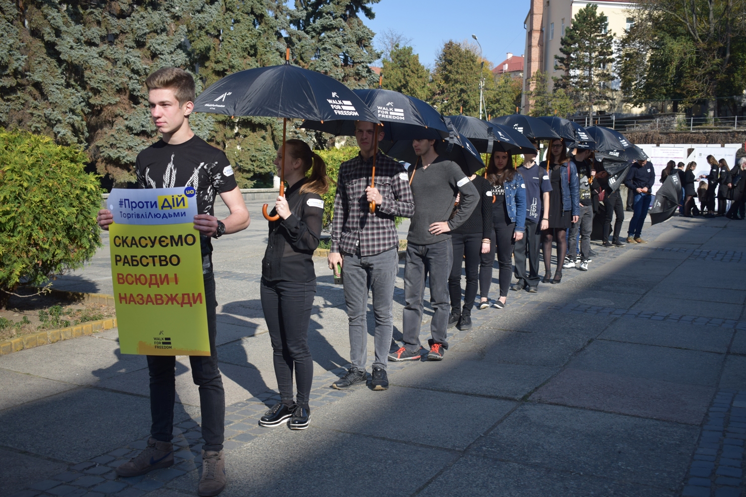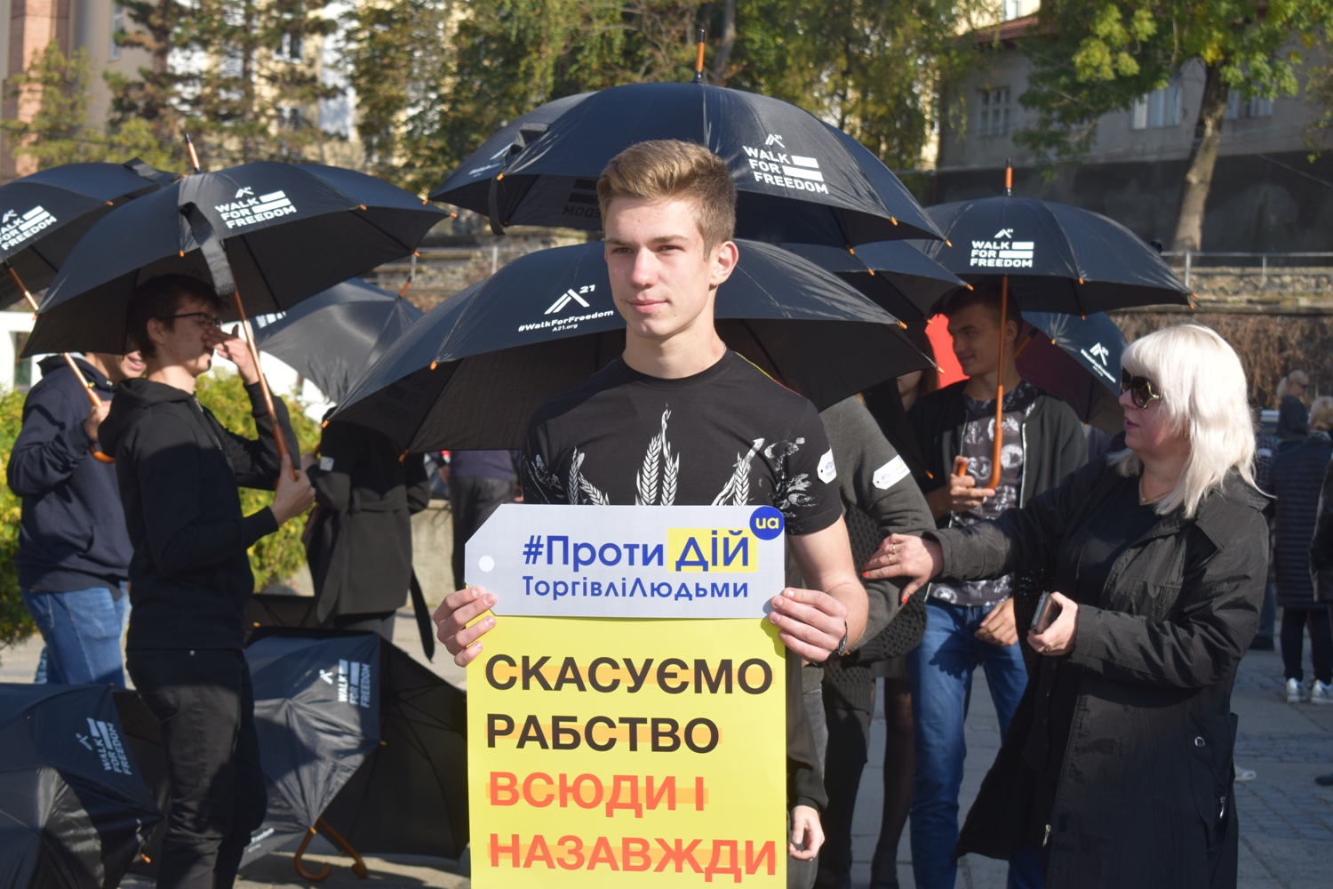 Сьогодні в Ужгороді до Дня боротьби з торгівлею людьми, який відзначаємо 18 жовтня, відбулася вулична акція «Хода за свободу». Таку акцію в обласному центрі Закарпаття провели вперше, так само вперше цьогоріч вона набула всеукраїнського характеру.