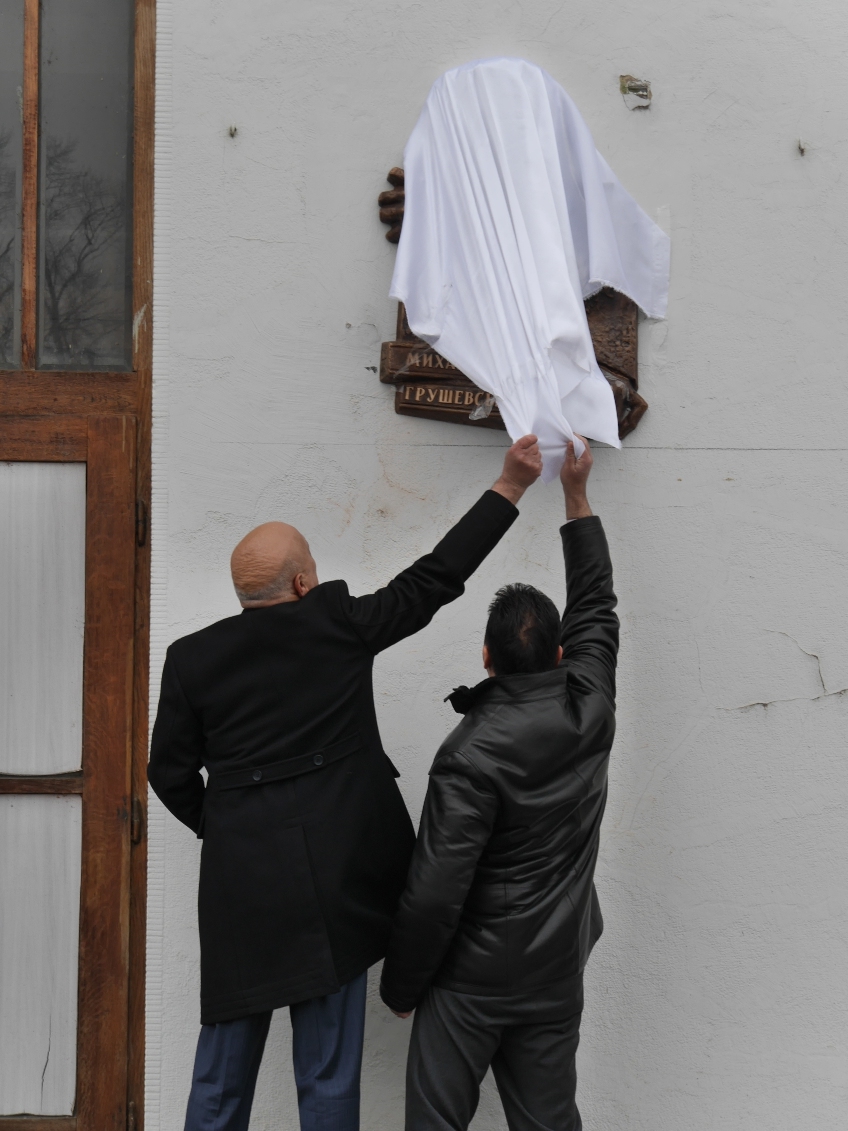 Коротко про символізм, закладений в образі Грушевського на пам’ятній дощці, розповів її автор Богдан Корж.