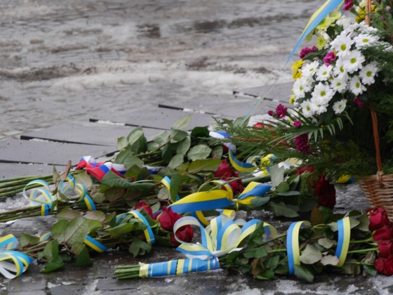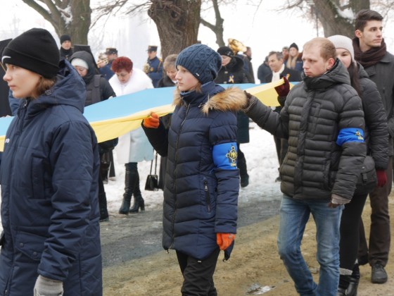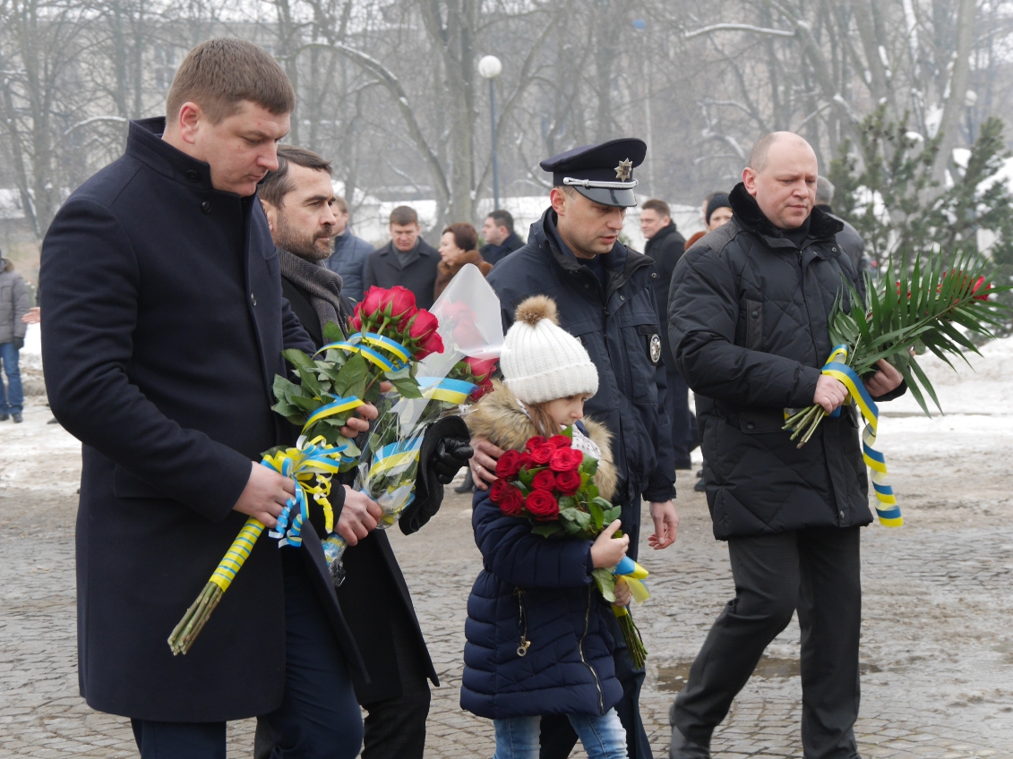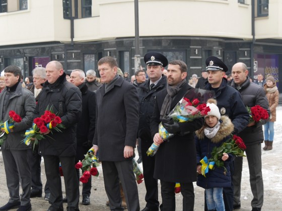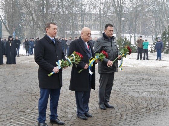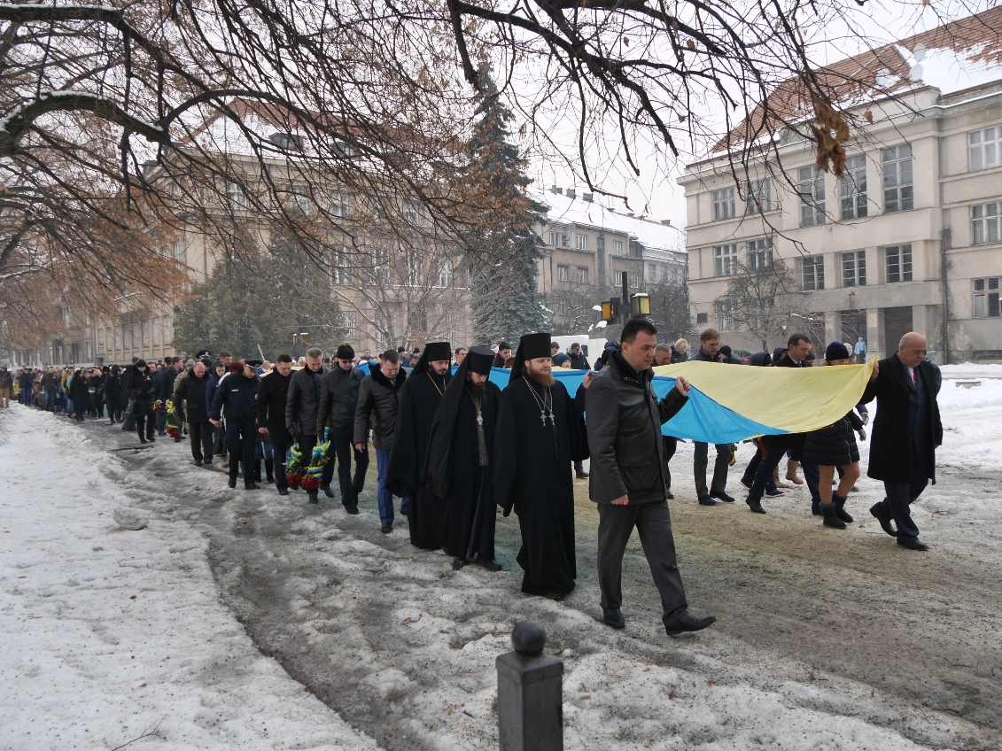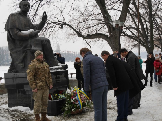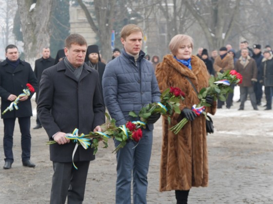Керівництво області та міста очолило колону ужгородців, які пронесли з площі Народної до пам’ятника Президенту Карпатської України Августину Волошину на набережній Незалежності 100-метровий прапор України. До цього монумента теж поклали квіти.