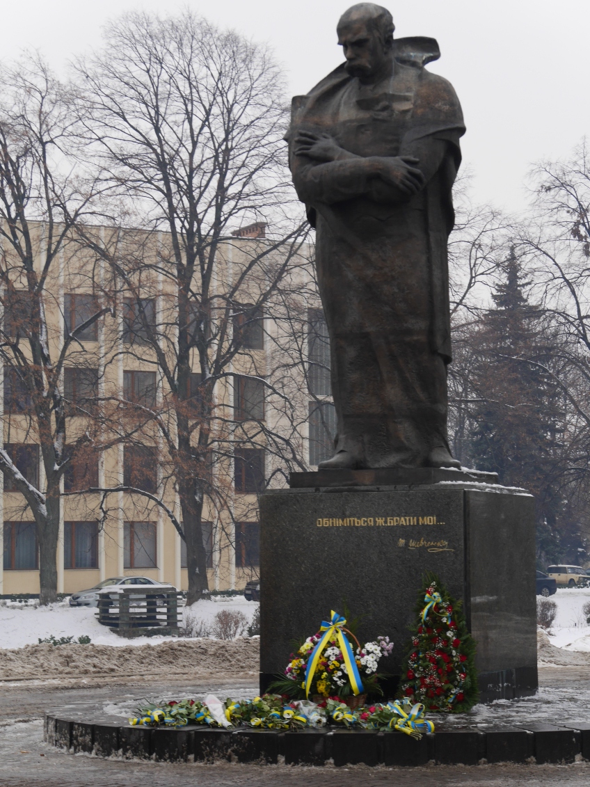 Відтак вшанували пам’ять Великого Кобзаря. Поклали квіти до пам’ятника Тарасу Шевченку на площі Народній, кілька композицій виконав Заслужений академічний Закарпатський народний хор.