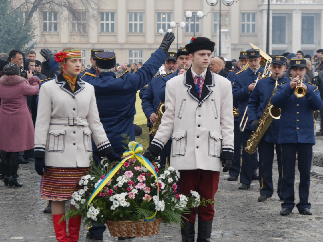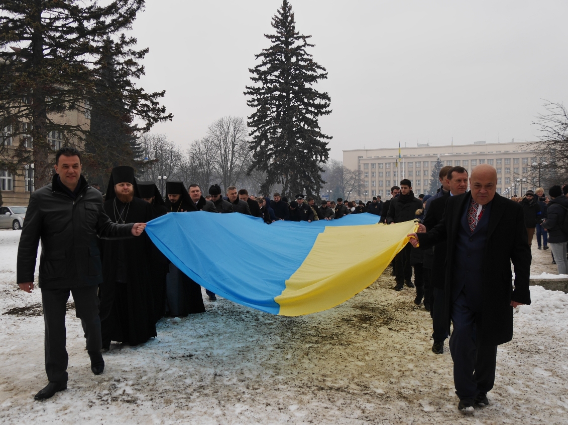 Урочистості до Дня Соборності України пройшли сьогодні в Ужгороді. У них взяли участь керівники області Геннадій Москаль, Михайло Рівіс, Ужгородський міський голова Богдан Андріїв, очільники силових структур, дипломати, духовенство, багато ужгородців, зокрема молоді.