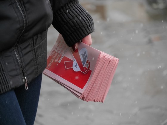 Соціальну акцію провели сьогодні й в Ужгороді. На площі Театральній працівники Ужгородського міського центру соціальних служб для сім’ї, дітей та молоді роздавали перехожим інформаційні буклети щодо профілактики ВІЛ-інфекції. До акції долучилися й працівники відділу спорту, сім’ї та молоді Ужгородської міської ради і центральної міської бібліотеки.
