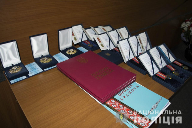 Заступник начальника ГУНП в Закарпатській області полковник поліції Іван Пеняк вручив відзнаки МВС – медалі «Патріот України» голові Закарпатської ОДА Геннадію Москалю, міському голові Ужгорода Богдану Андріїву, генералу міліції Василю Варцабі, полковнику міліції Луці Федурці та іншим ветеранам ОВС краю.