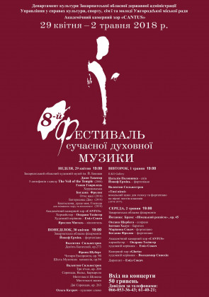 До слова, Фестиваль сучасної духовної музики продовжується, тому у вас є можливість відвідати наступні концерти. Уже сьогодні, 30 квітня, у Закарпатській обласній філармонії відбудеться концерт відомого українського піаніста, професора Йожефа Ерміня. У програмі прозвучать твори Валентина Сильвестрова, Франца Шуберта та Шопена.