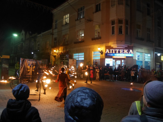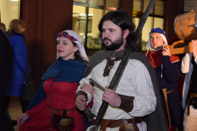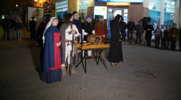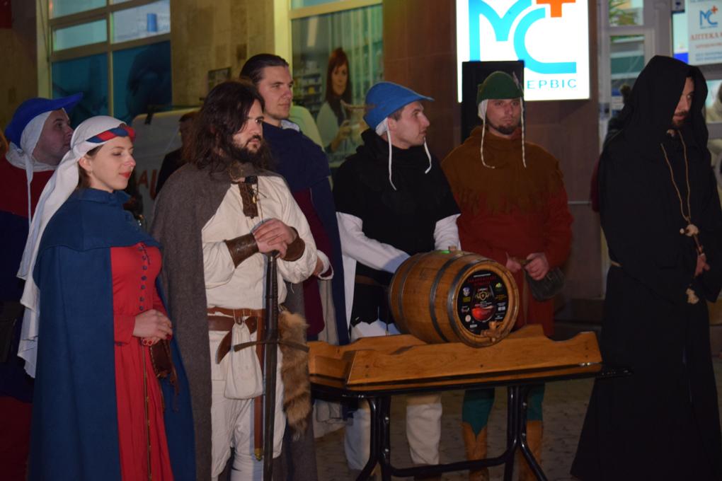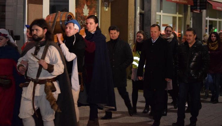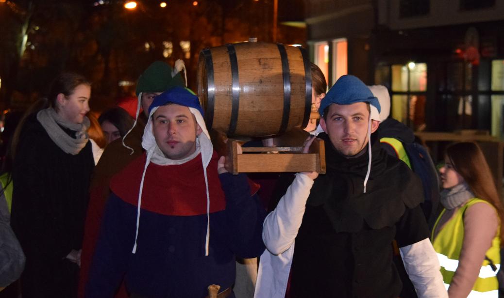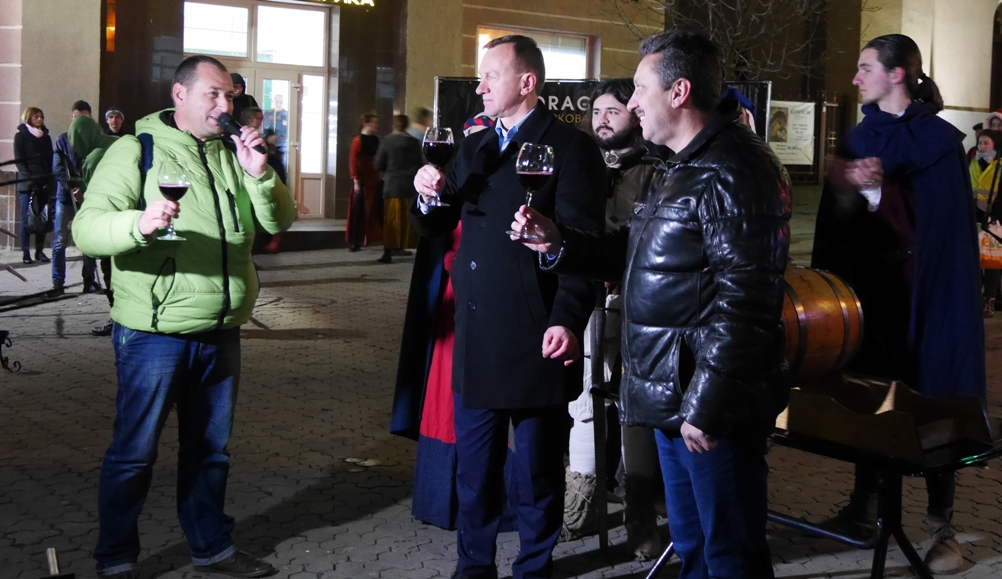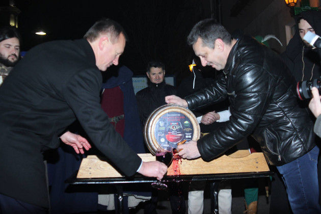 Сьогодні ж в Ужгороді театралізована хода з лицарями та монахами пройшла з площі Шандора Петефі через площу Театральну, а на перехресті вулиць Волошина та Корзо відбулося урочисте відкриття Свята вина. Тут Ужгородський міський голова Богдан Андріїв та голова Спілки приватних виноградарів та виноробів Закарпаття Олександр Ковач відкупорили першу бочку цьогорічного виноградного напою. Після цього усі присутні на площі змогли пригоститися вином. Святкового настрою додало яскраве фаєр-шоу від циркової арт-студії Dragonfly.