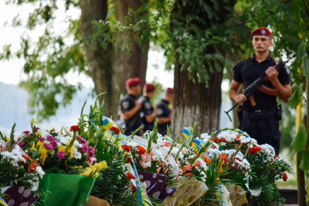 22 серпня в Україні – День пам’яті працівників органів внутрішніх справ, які загинули при виконанні службових обов’язків. В Ужгороді на Православній набережній біля памʼятника загиблим працівникам органів внутрішніх справ відбувся молебень та церемонія покладання квітів.