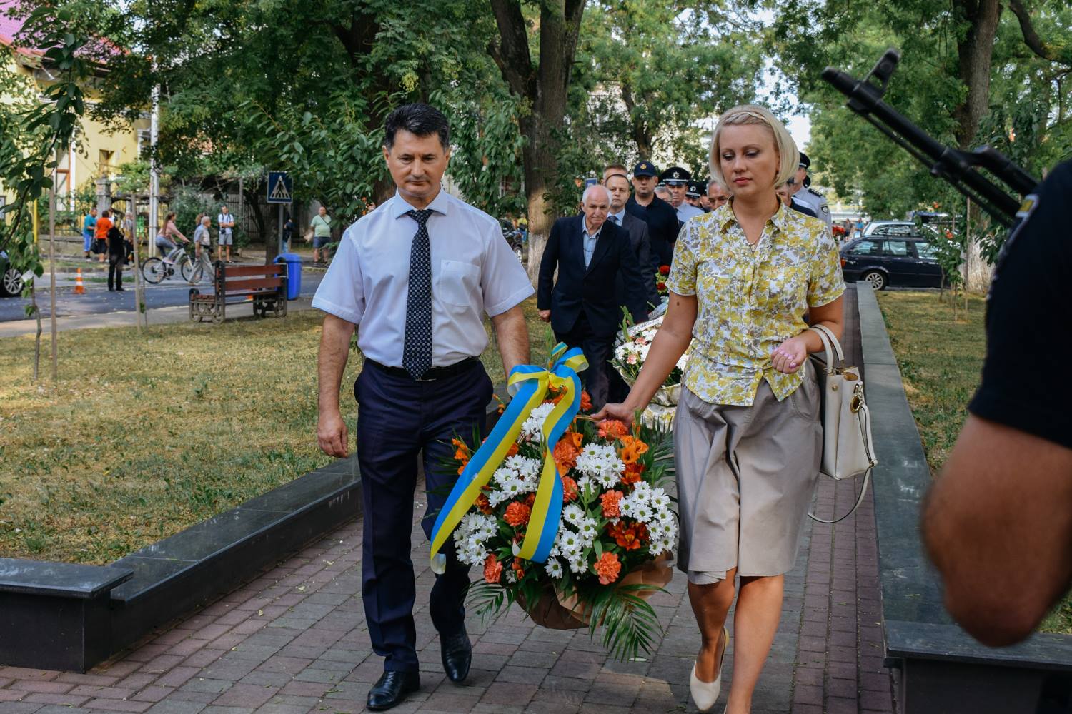 Вшанувати пам’ять загиблих правоохоронців прийшли керівники Закарпатської області та міста Ужгорода, Головного управління Нацполіції в області, обласних управлінь СБУ, ДСНС, Державної фіскальної служби, прокуратури, Управління патрульної поліції в Закарпатській області, колеги, рідні, представники громадськості.
