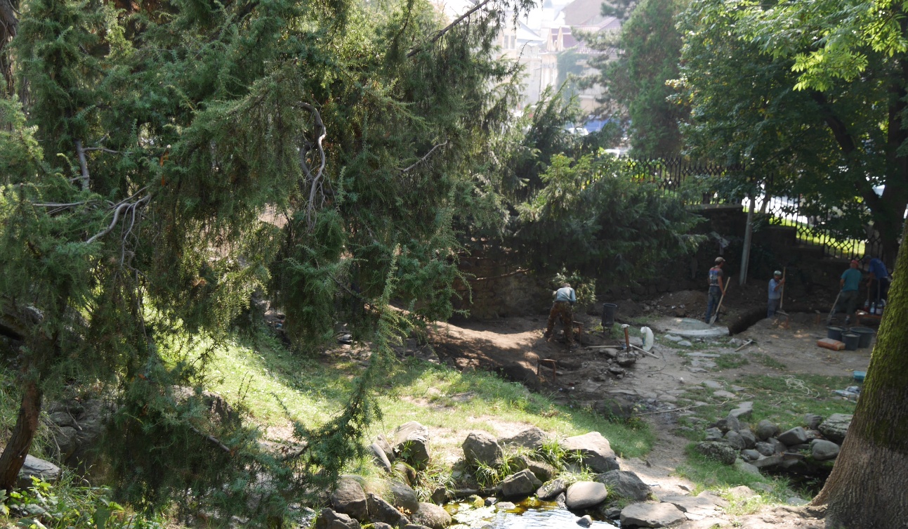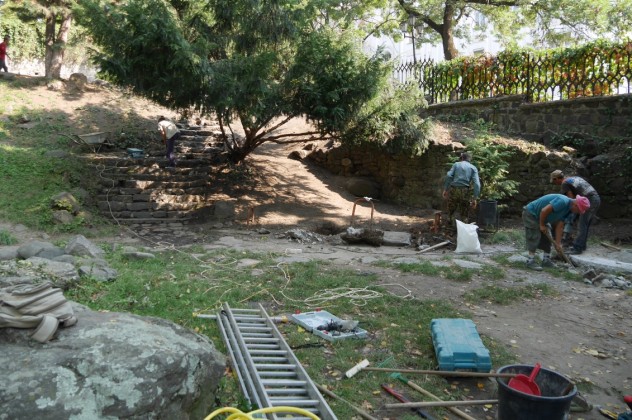 Тривають роботи з оновлення скверика-альпінарію в центрі Ужгорода. Там упорядковують зелені насадження, миють кам’яні сходи, готують основу для лавок і встановлення перголи, планують спустити водойму для радикального очищення водної чаші, профілактики системи наповнення і упередження загнивання.