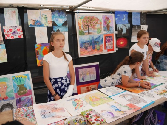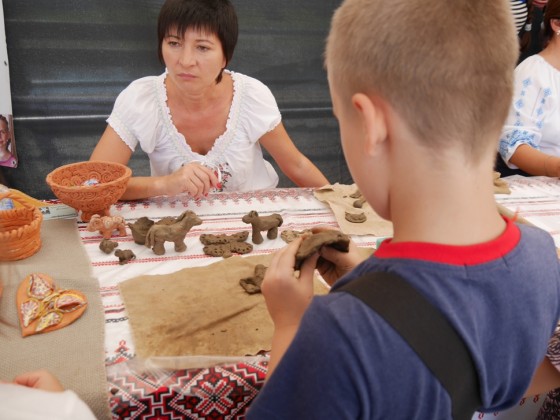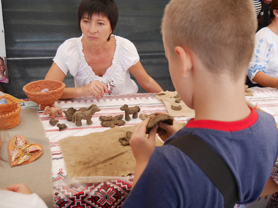 На Театральній також до 17 години триватимуть майстер-класи для дітей із художньої творчості, у тому числі з виготовлення весільних аксесуарів, проходить виставка-продаж малюнків вихованців дитячої школи мистецтв, хенд-мейд робіт юних художників, майстрів, можна поласувати закарпатською весільною випічкою. Працює також ярмарок-продаж робіт майстринь на підтримку військових у зоні АТО.
