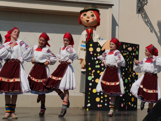На сцені виступили танцюристи «Джерельця Карпат», юна вокаліста, а далі всіх бажаючих запросили до театру ляльок «Бавка», де почалася українська прем’єра спільного творчого українсько-словацького проекту – вистави «Чарівна повітряна куля».