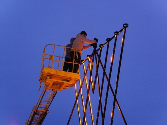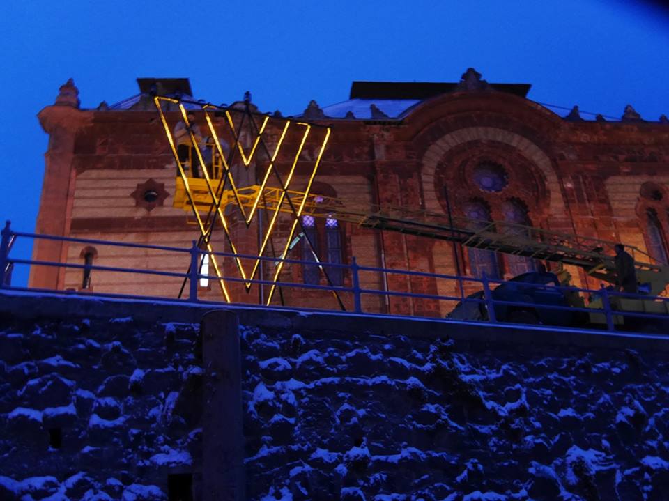 В Ужгороді біля обласної філармонії (колишньої синагоги) сьогодні ввечері, 25 грудня, з нагоди єврейського свята Хануки відбулася урочиста церемонія запалювання менори. Усіх, хто зібрався на відзначення, прийшли привітати голова Закарпатської обласної державної адміністрації Геннадій Москаль, Ужгородський міський голова Богдан Андріїв, депутат обласної ради Андрій Андріїв, головний равин обласного центру Закарпаття Менахем Мендель, директор благодійного фонду “Хесед Шпіра” Михайло Галін.