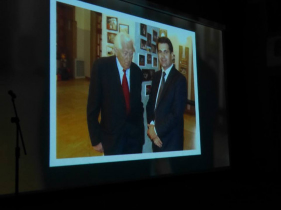 Відтак ведучі нагадали історію «Інтерляльки», на жаль, уперше фестиваль проводиться без його ініціатора і незмінного директора – Заслуженого працівника культури України, Почесного громадянина Ужгорода Олександра Туряниці. Представили і коротку презентація фото та відео з Олександром Івановичем, а тоді на сцену запросили його вдову і директор «Бавки» Мирослав Петій вручив їй квіти та торт.