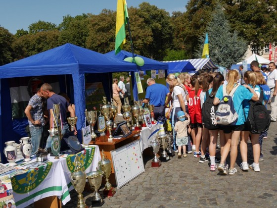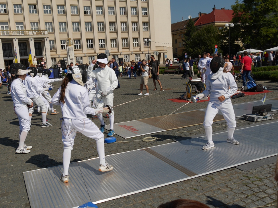 В Ужгороді на площі Народній сьогодні опівдні відбулося урочисте відкриття святкування Дня фізичної культури та спорту. Представники всіх спортивних федерацій Закарпаття зібралися перед будівлею Закарпатської ОДА й організували імпровізовані локації для демонстрації особливостей свого виду спорту.