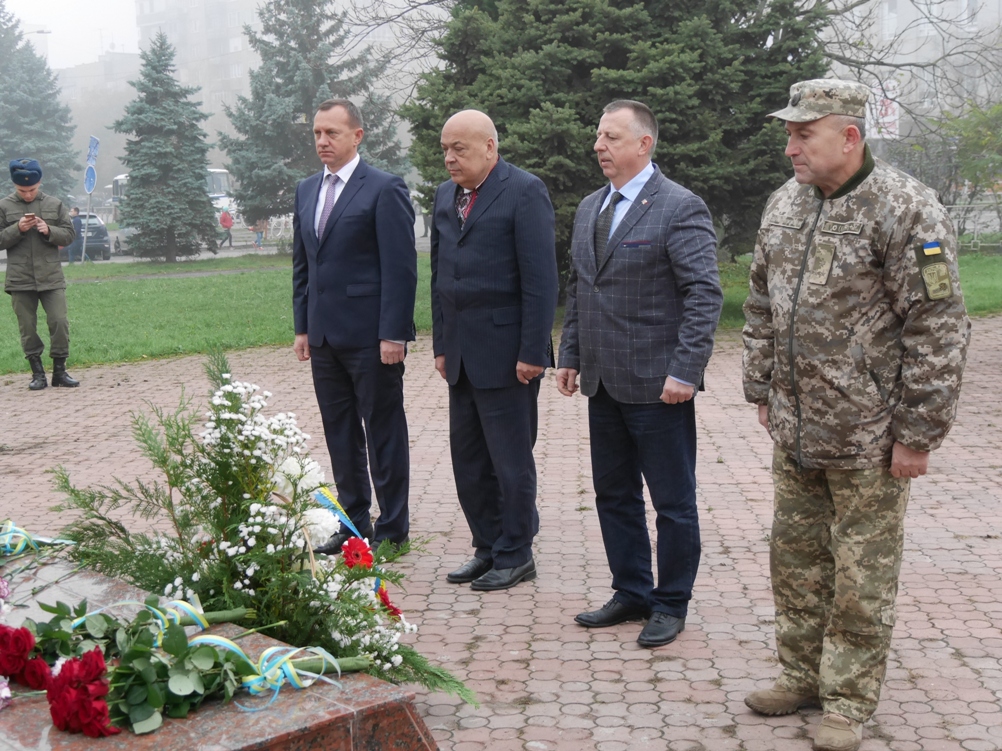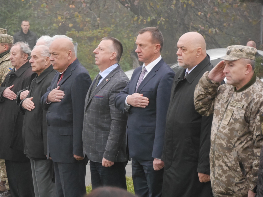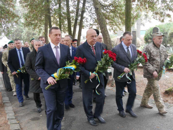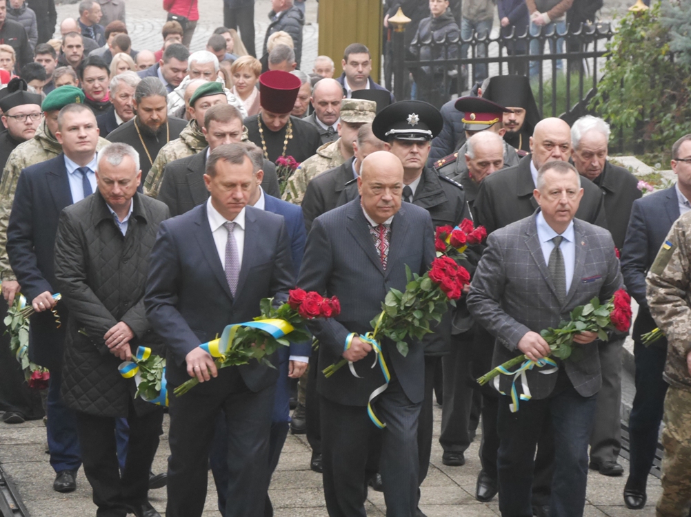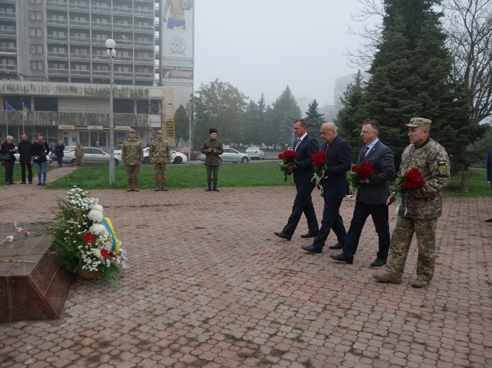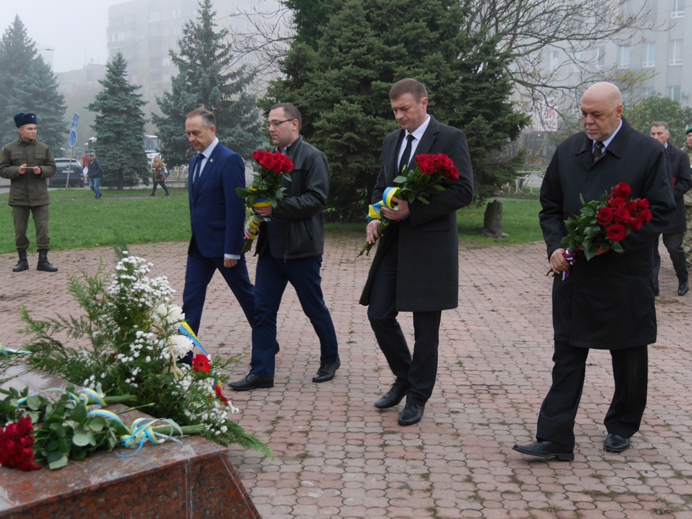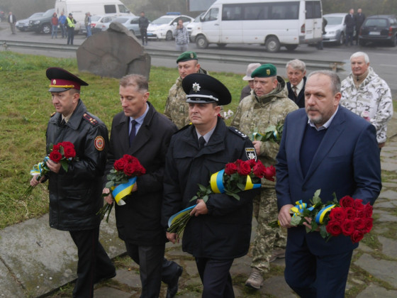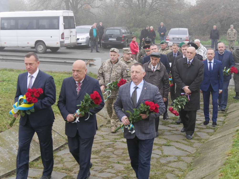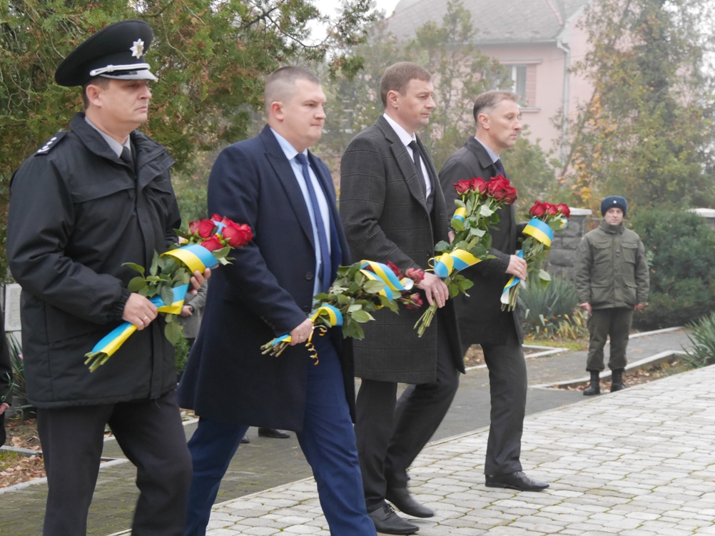 Голова Закарпатської ОДА Геннадій Москаль, заступник голови обласної ради Петро Грицик, міський голова Ужгорода Богдан Андріїв, Генеральний консул Словацької Республіки Мірослав Мойжіта, керівники правоохоронних органів, військові та ветерани поклали квіти, пролунав салют.