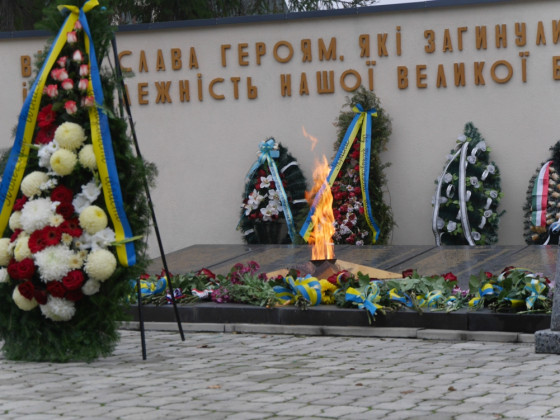 Урочисте покладання квітів відбулося і до монументу «Добровольцям Закарпаття – учасникам Другої світової війни» на площі Кирила та Мефодія, а відтак до Вічного вогню на меморіальному комплексі «Пагорб Слави». Тут також пройшла хвилина мовчання, а військові салютували автоматними пострілами.