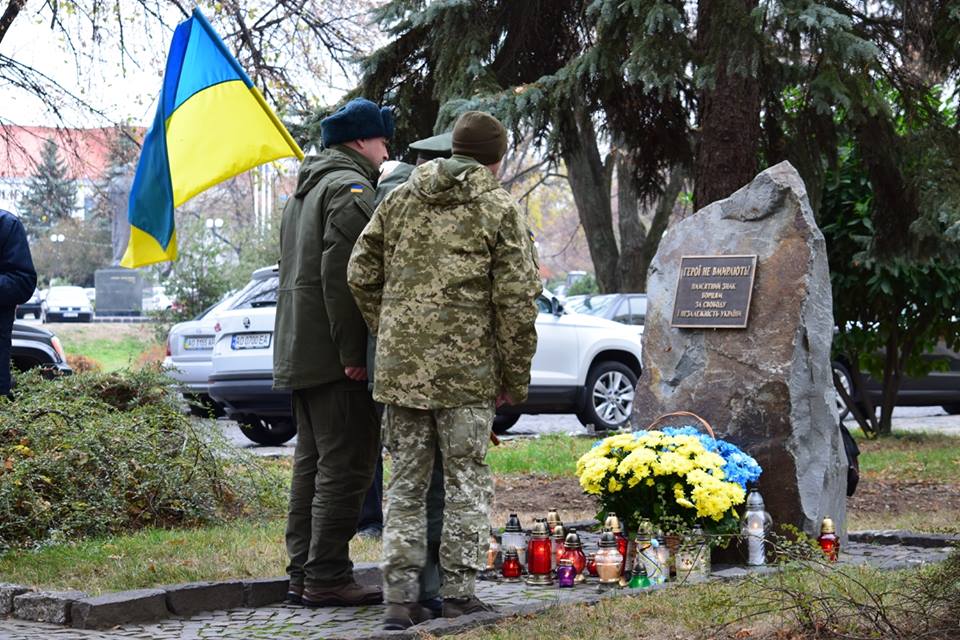 На площі Народній біля пам’ятного знаку борцям за свободу і незалежність України запалили свічки та лампадки. Хвилиною мовчання віддали честь героям, котрі поклали життя за майбутнє України.