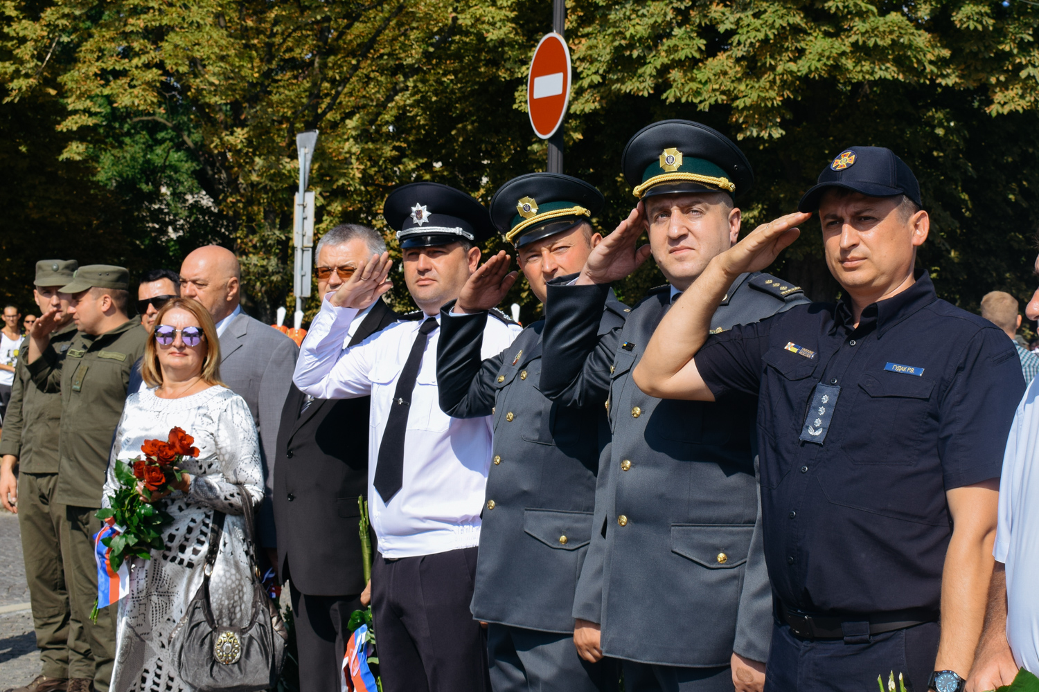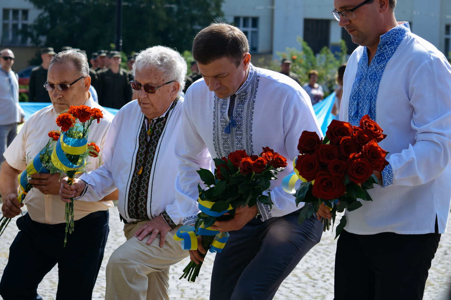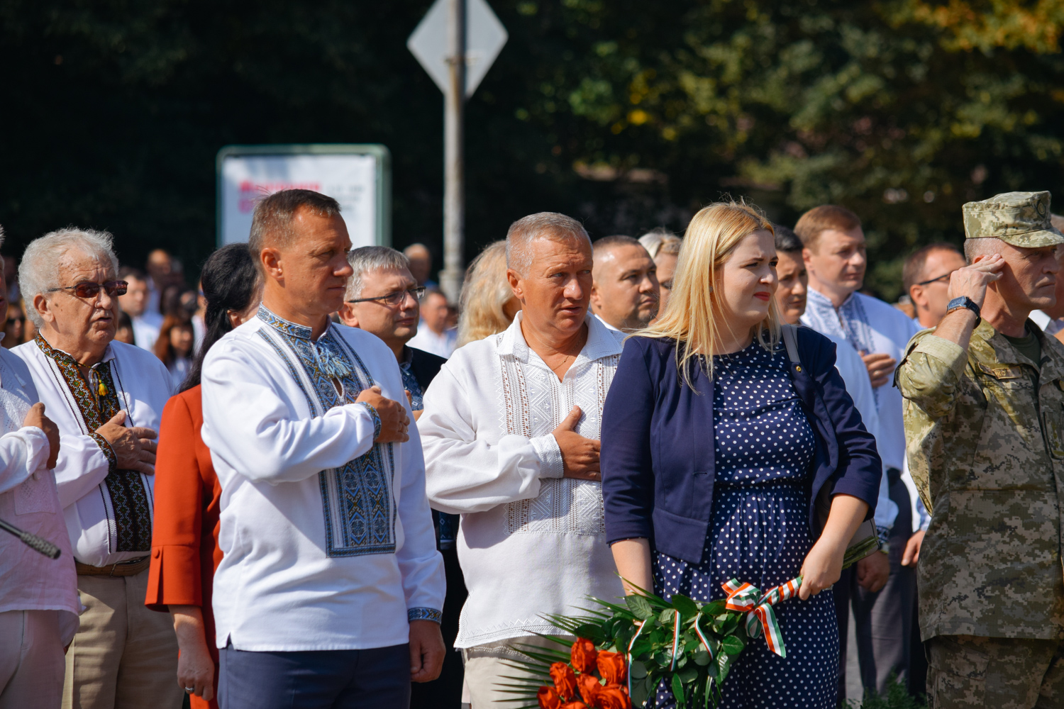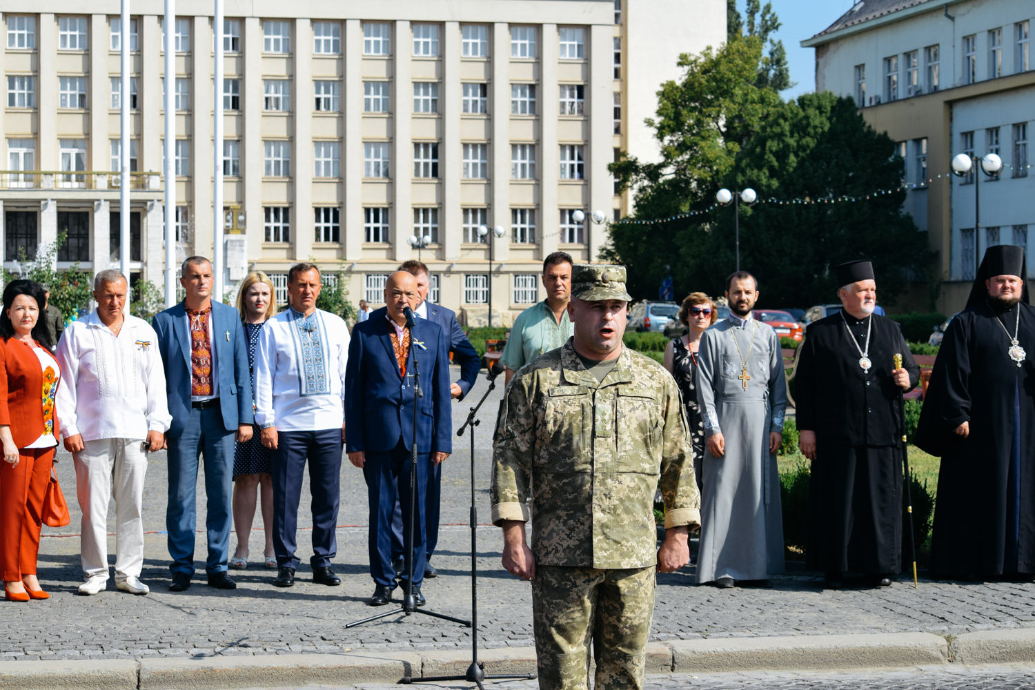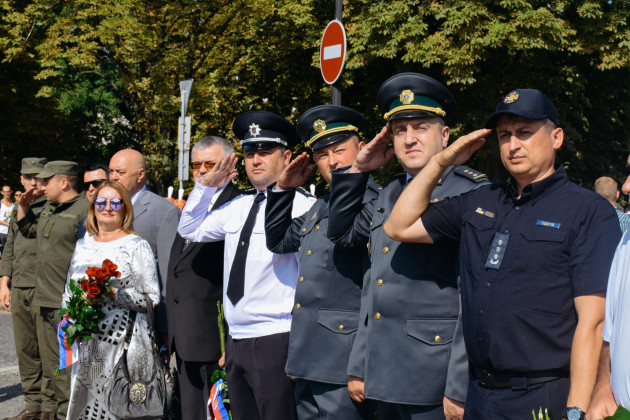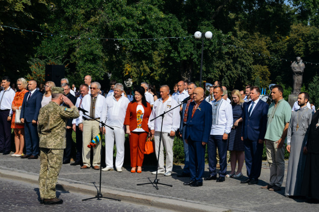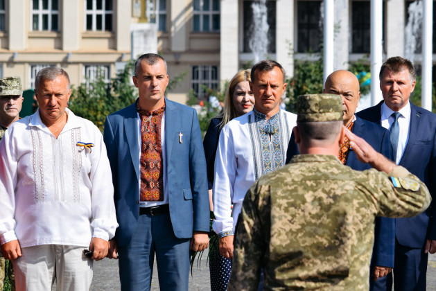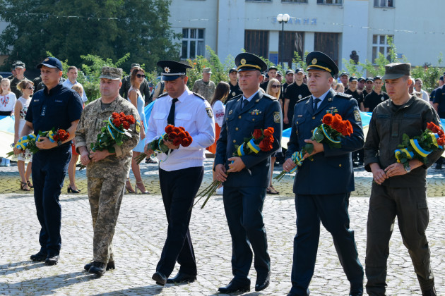 Після шикування військових та силовиків підняли Державний Прапор України, після чого у супроводі оркестру Закарпатської обласної філармонії відбулося покладання квітів до пам′ятника Тарасу Шевченку. Закарпатський народний Заслужений академічний хор виконав Кобзарів «Заповіт» та «Реве та стогне Дніпр широкий».